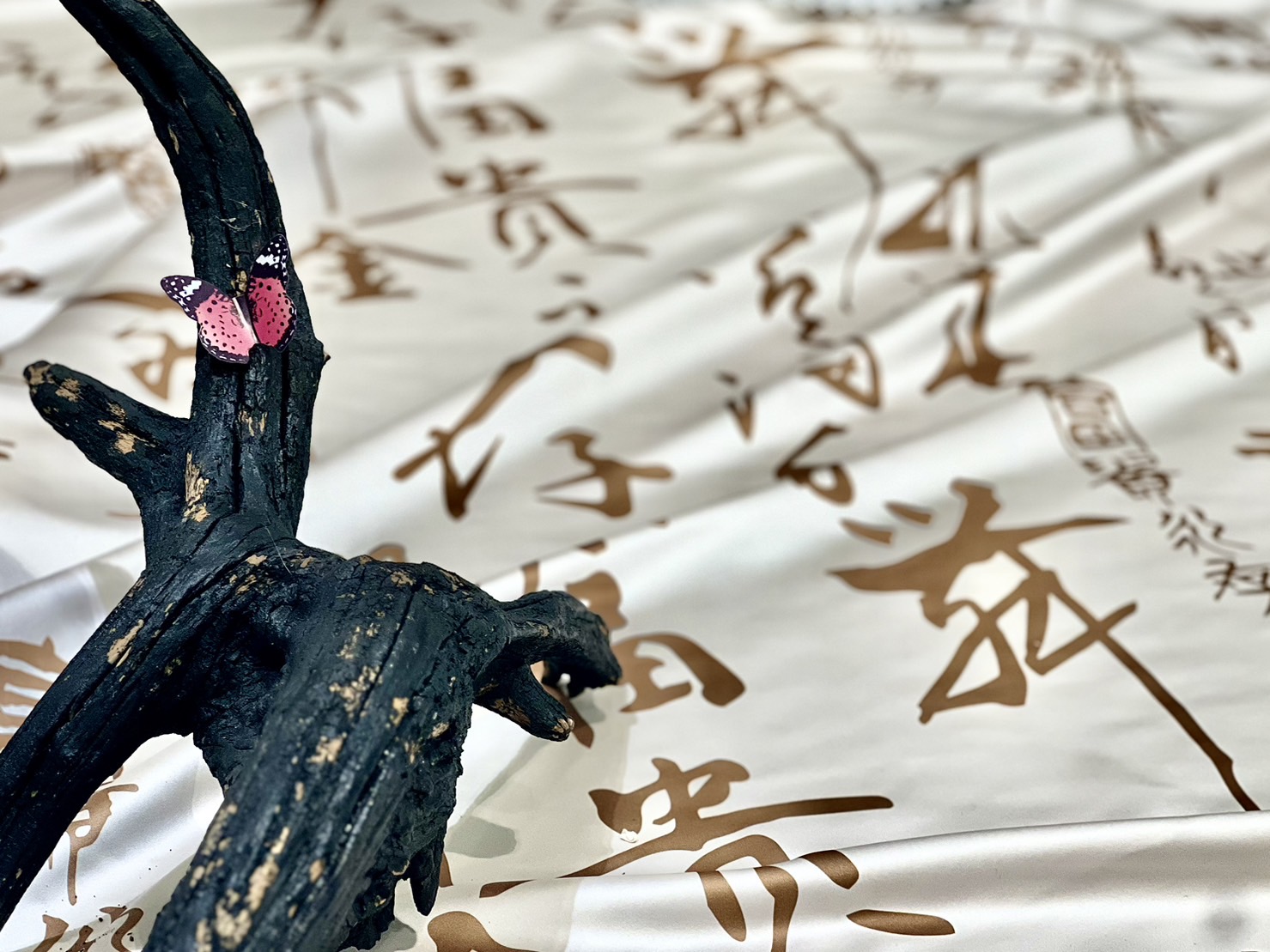 書法家馮憲民透過「龍」字的書寫,為新的一年開啟幸運的大門,也在天馬行空想像的宇宙,創造出各具奇趣、在書、畫之間獨特的書法之美。