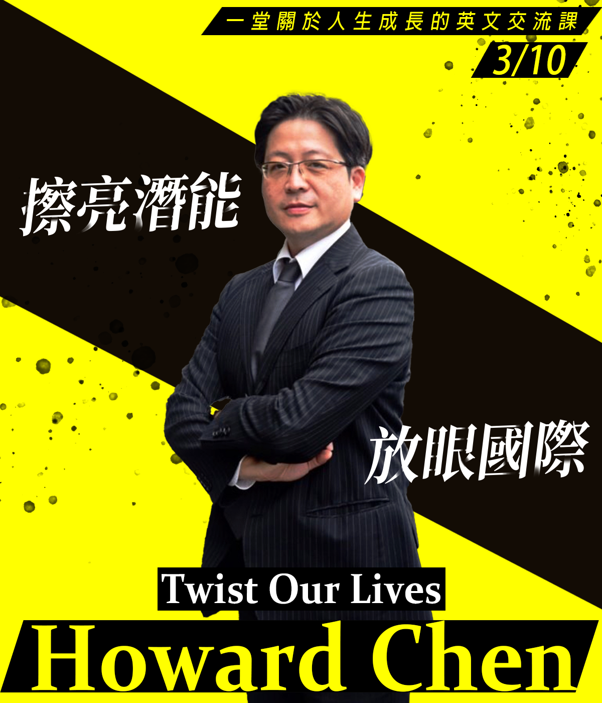 Howard藉由Toastmasters開啟了他人生透過領導與溝通的影響力的旅程,並在商周CEO學院、多個大學團隊擔任領導力及企業轉型講師;Howard將以自身故事,分享給你從Toastmasters開始,他的人生的轉捩點,並連結到現在陪伴孩子家庭成長,啟蒙莘莘學子,並將職涯與生命志業結合的自我實現之旅忠實地展現。