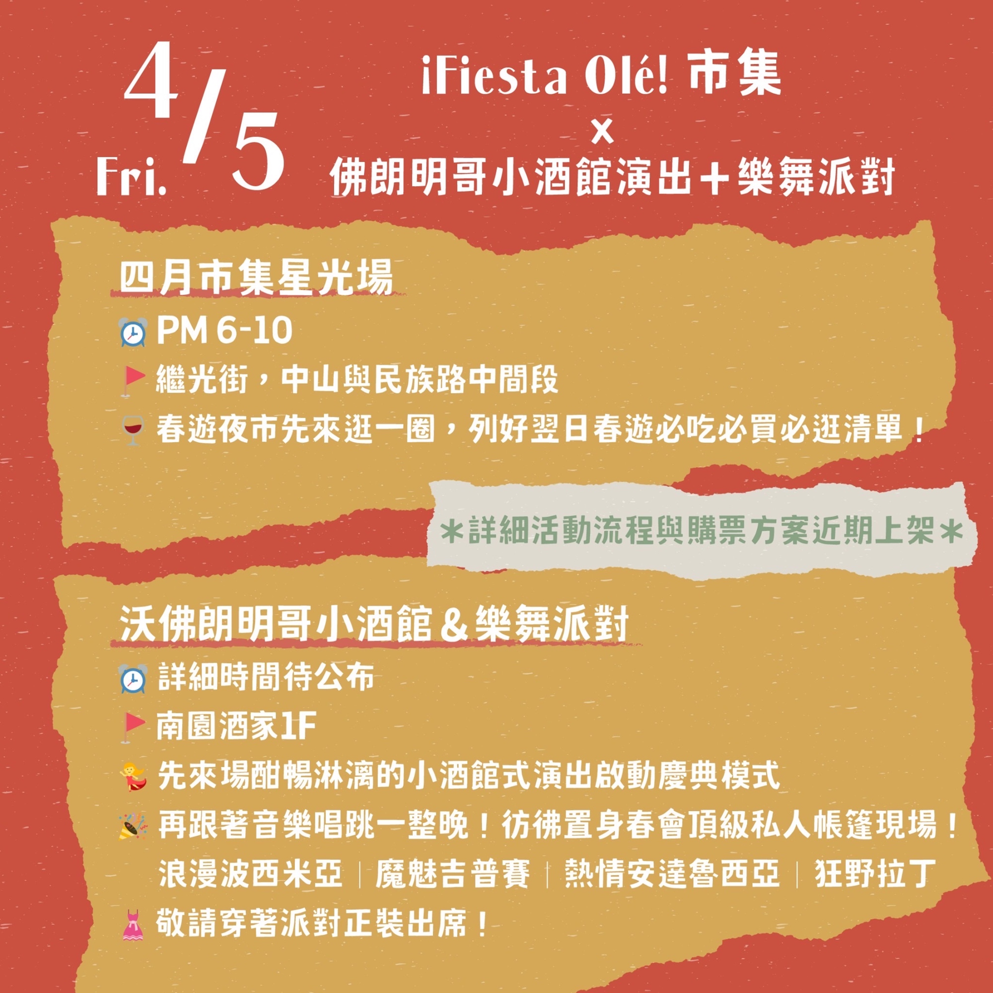 4/5 💃 ¡FIESTA OLÉ! 💃 佛朗明哥小酒館演出+前夜派對