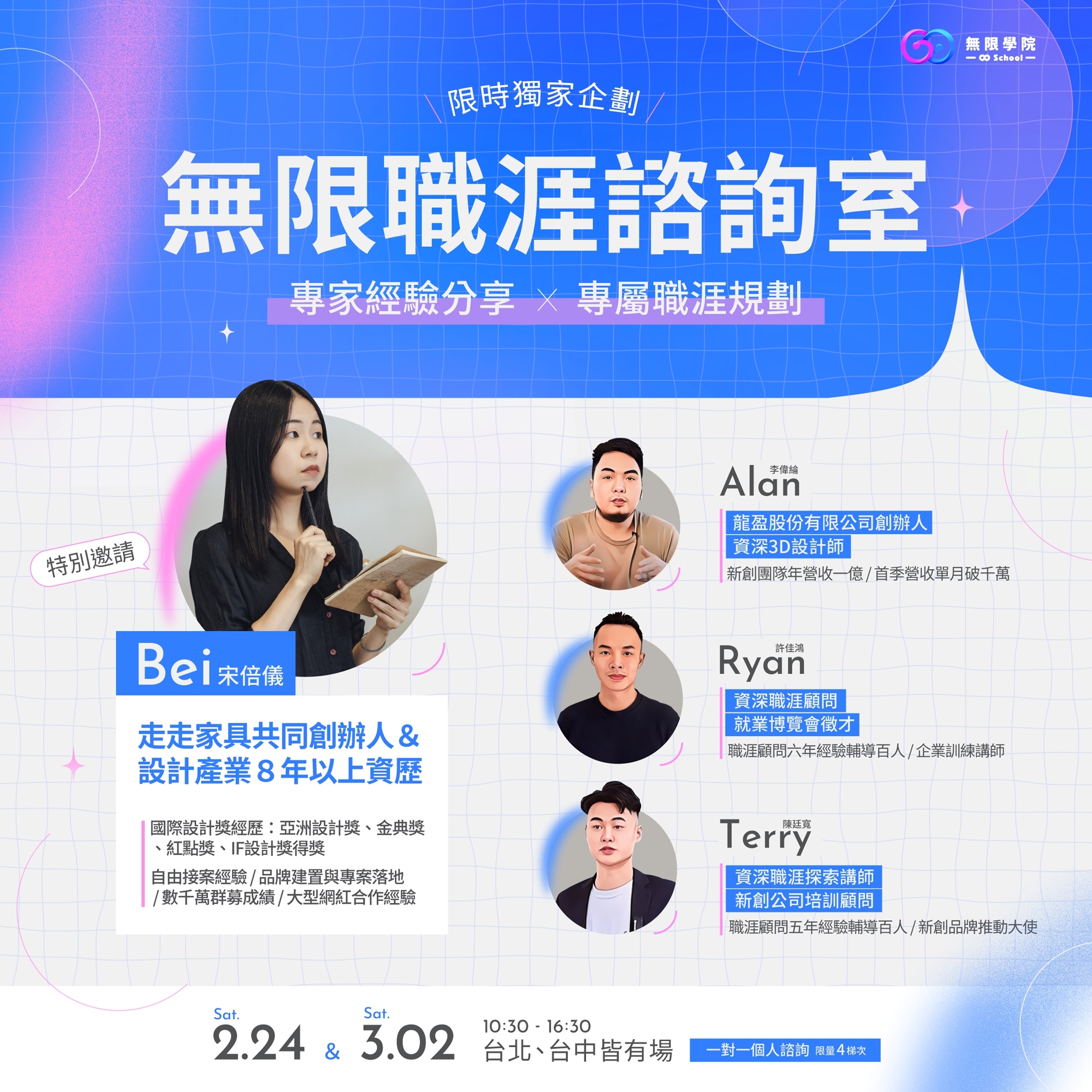 邀請產業資深前輩與顧問,分享工作與接案經驗與最夯的職業趨勢!