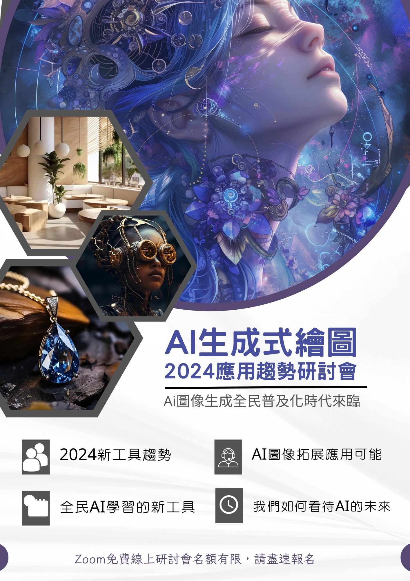 Ai圖像生成全民普及化時代來臨,本次研討會著重於Ai圖像生成創作的實際應用,在2024年有哪些新趨勢?邀請FB超過17萬人的「Bing DALL-E 3 and ALL AI 生成式藝術小小詠唱師」社團創辦人趙佳誼老師現身說法,邀請您一同探討Ai繪圖的新趨勢。