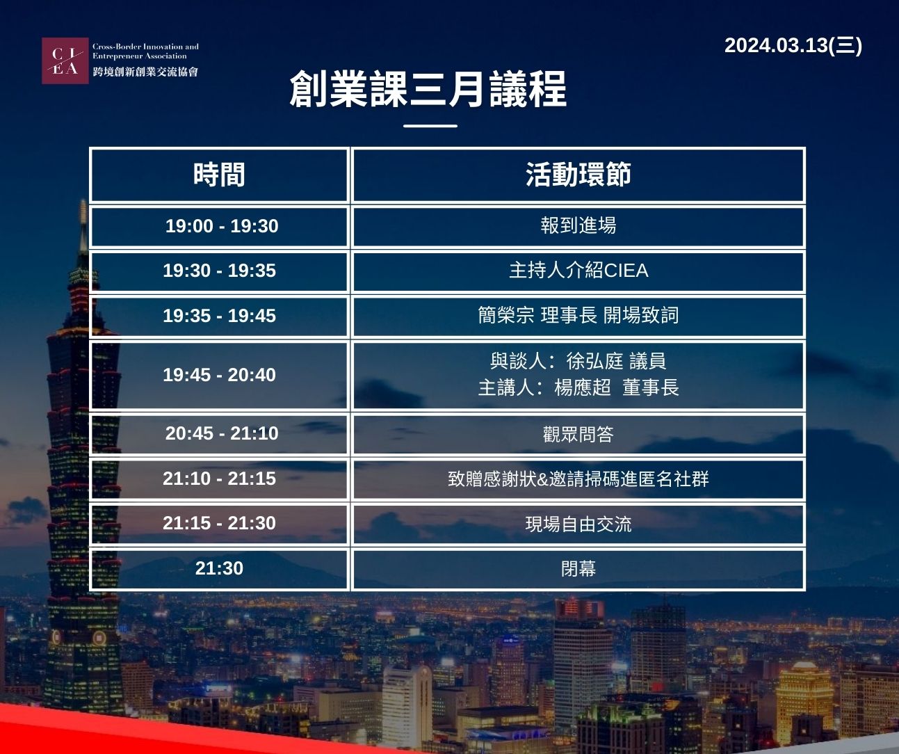 - 主辦單位:跨境創新創業交流協會CIEA