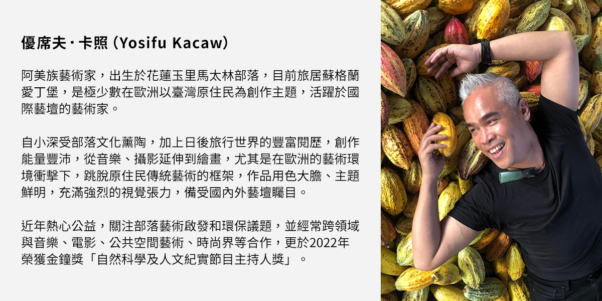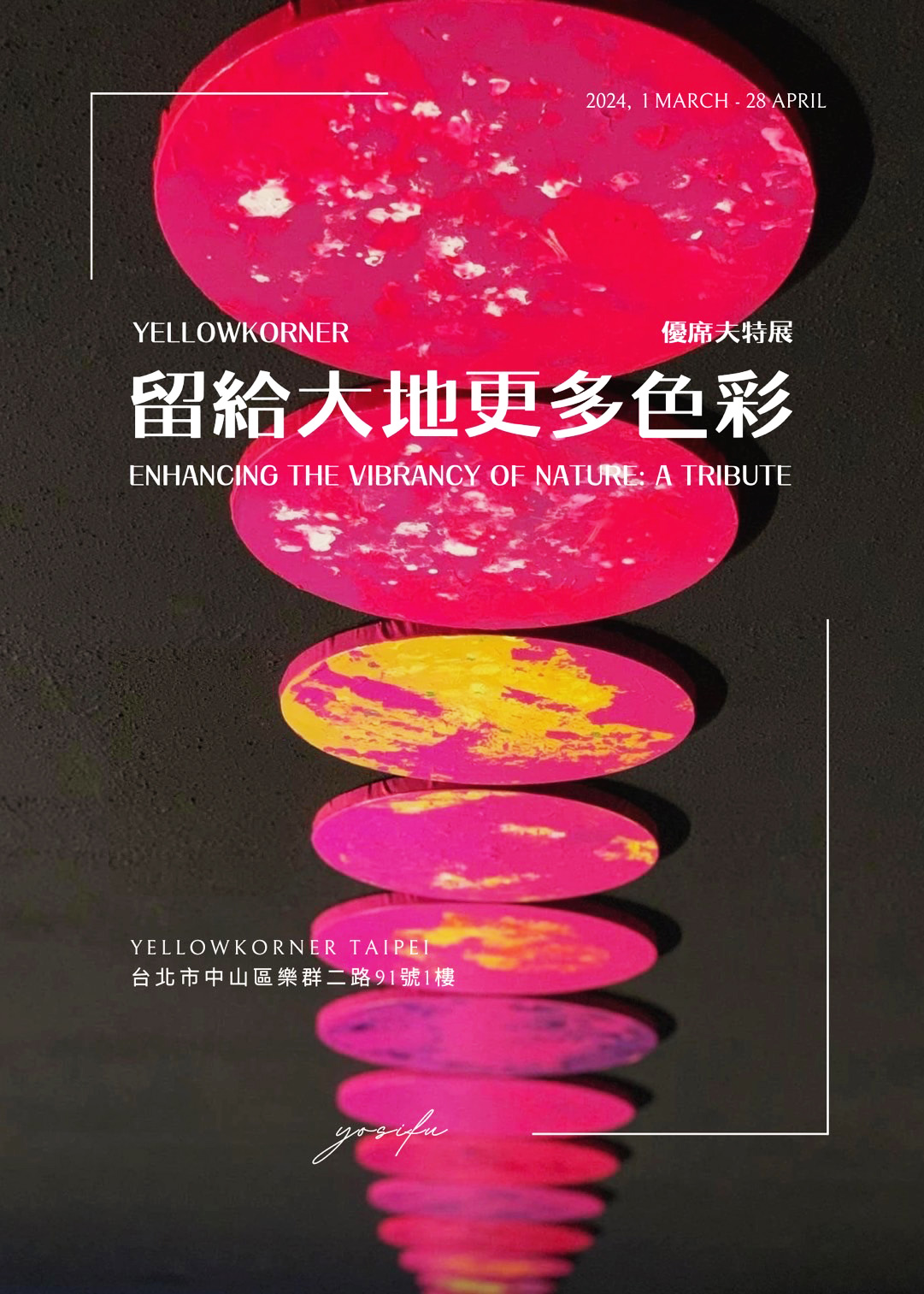 優席夫2024年年度的首展,本次特展以《留給大地更多色彩》為主題,共計展出優席夫的二十餘件多元媒材創作,展現他在攝影與繪畫等藝術領域的卓越才華。透過展品觀眾可深刻感受優席夫對大地「多樣性」與 「生機」的回應,猶如在大自然中灑下獨特的藝術色彩。