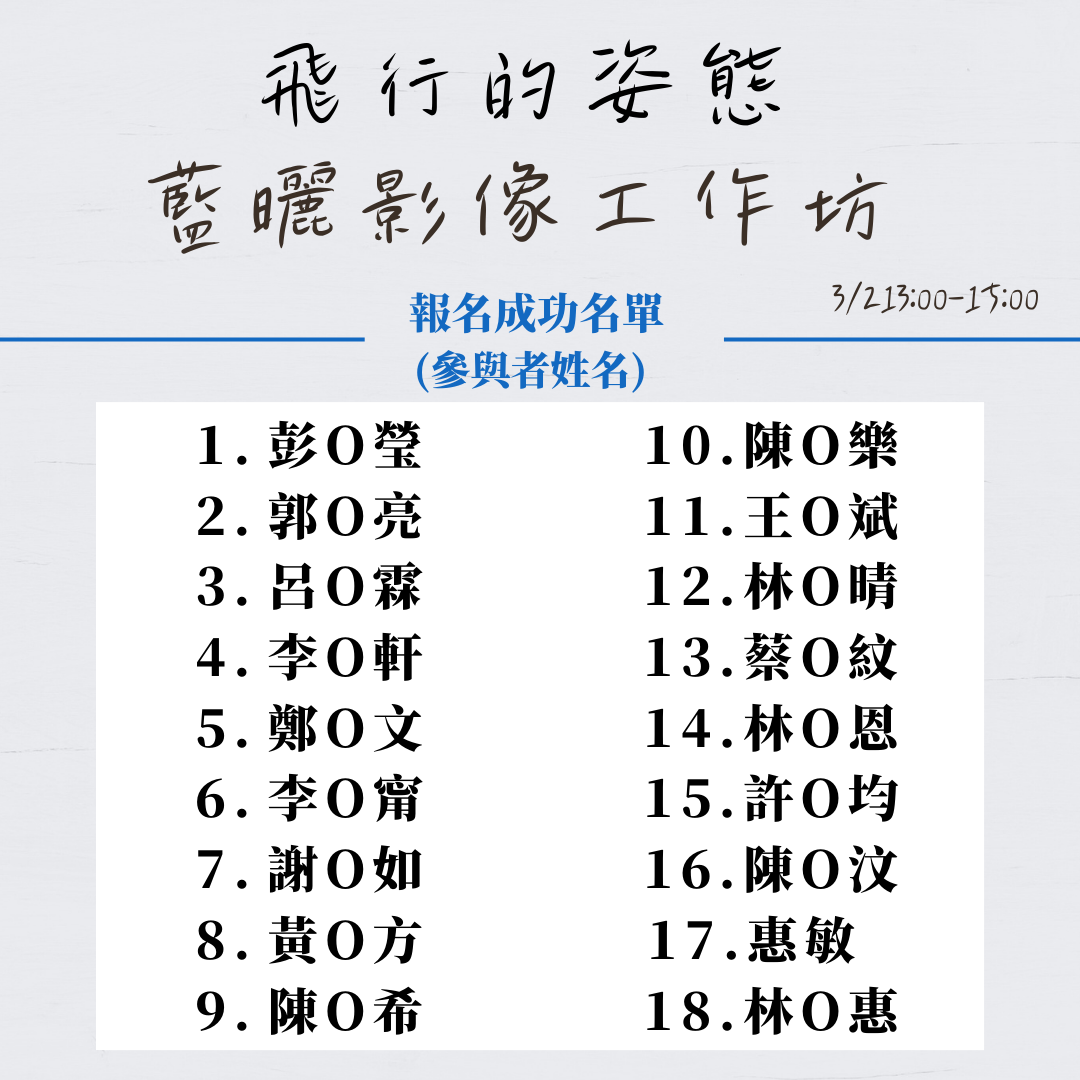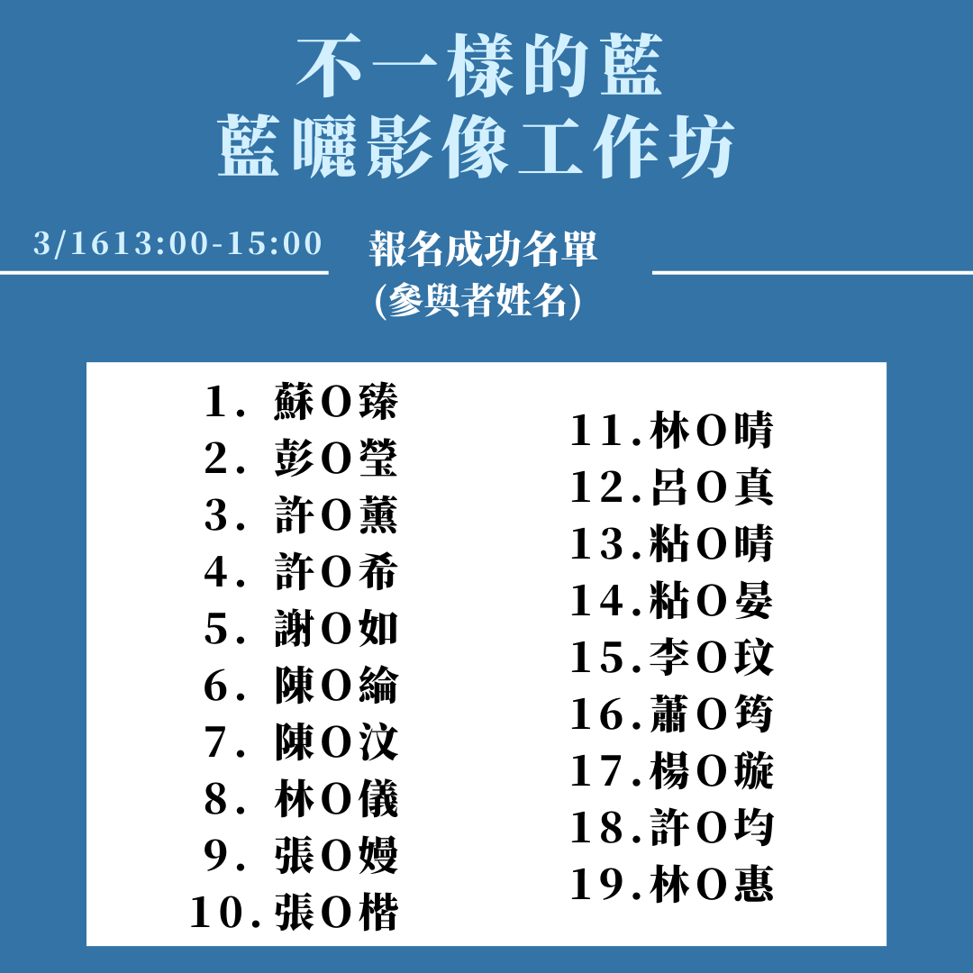- 成功報名後,須準備一張照片製作藍曬的照片,提供藝術家課前準備材料使用。