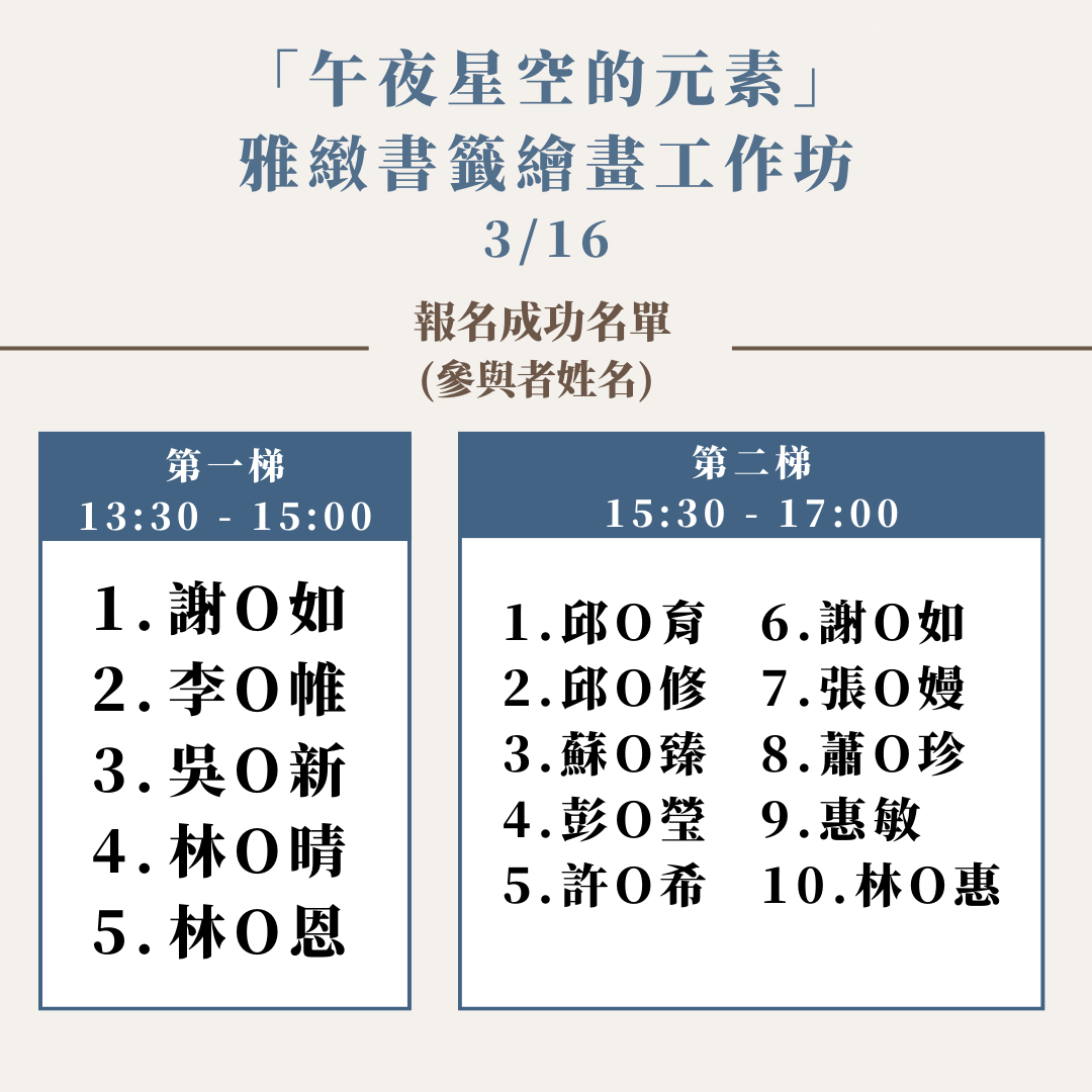 3/16 「午夜星空的元素」雅緻書籤繪畫工作坊 | 藝術家陳思穎