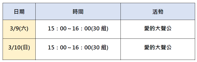 活動時間 :2024年3月09日(六) 15:00~16:00