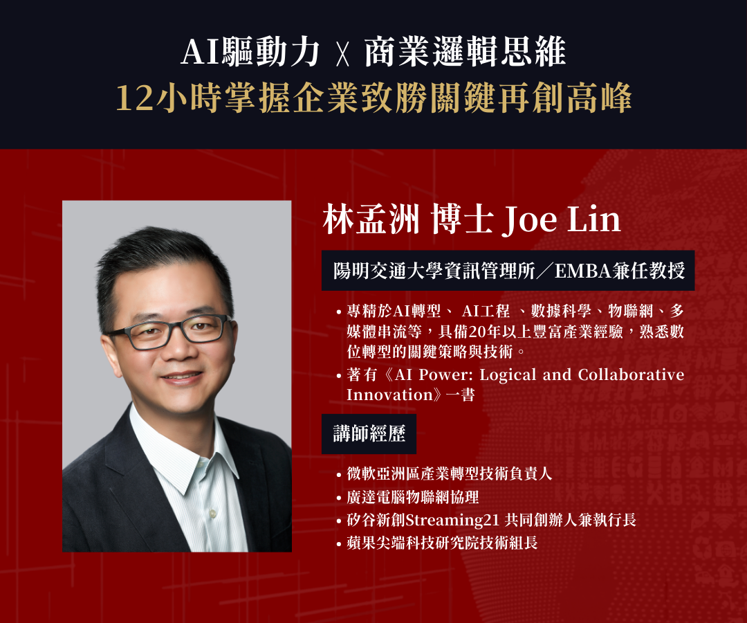講師Joe Lin將其多年的產業實踐、學術研究經驗結合最新AI趨勢,規劃出此課程。