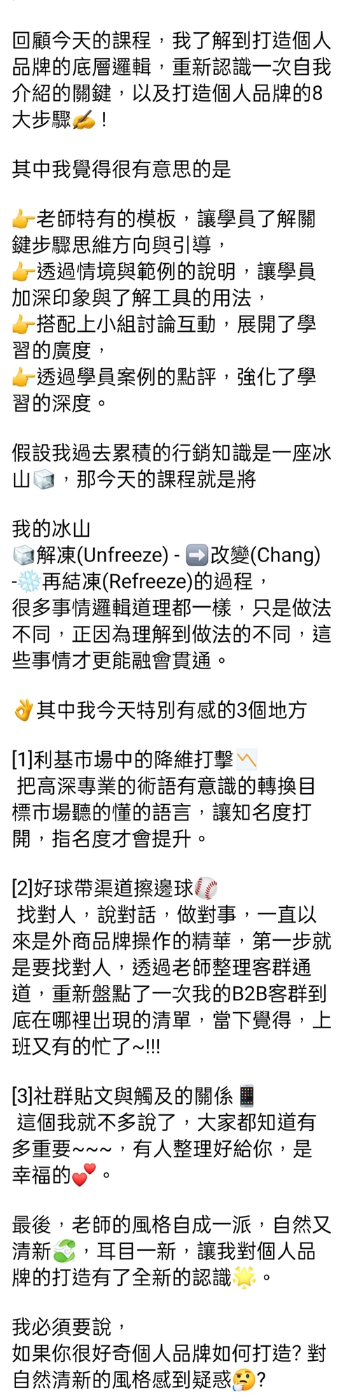 ✅用外商打造商業品牌的邏輯框架協助學員打造個人品牌