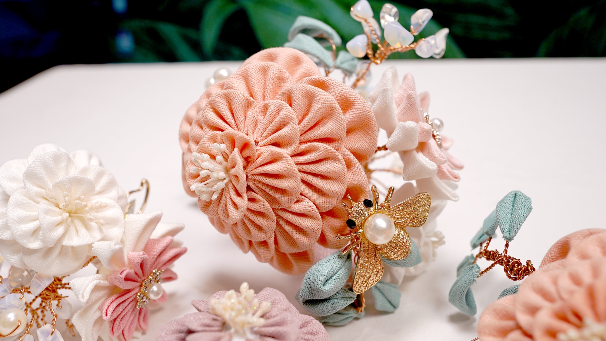 接下來,我們將轉入日式和風布花手作教學。和風布花,一種傳統的日本藝術形式,它不僅展現了日本文化的精緻與雅致,還體現了對自然美的崇尚和再現。在我們的課程中,您將學習選擇布料、剪裁、及組裝布花的技巧。每一步都是對細節的關注和對美的追求,旨在透過創作過程來提升內在的平和與喜悅。