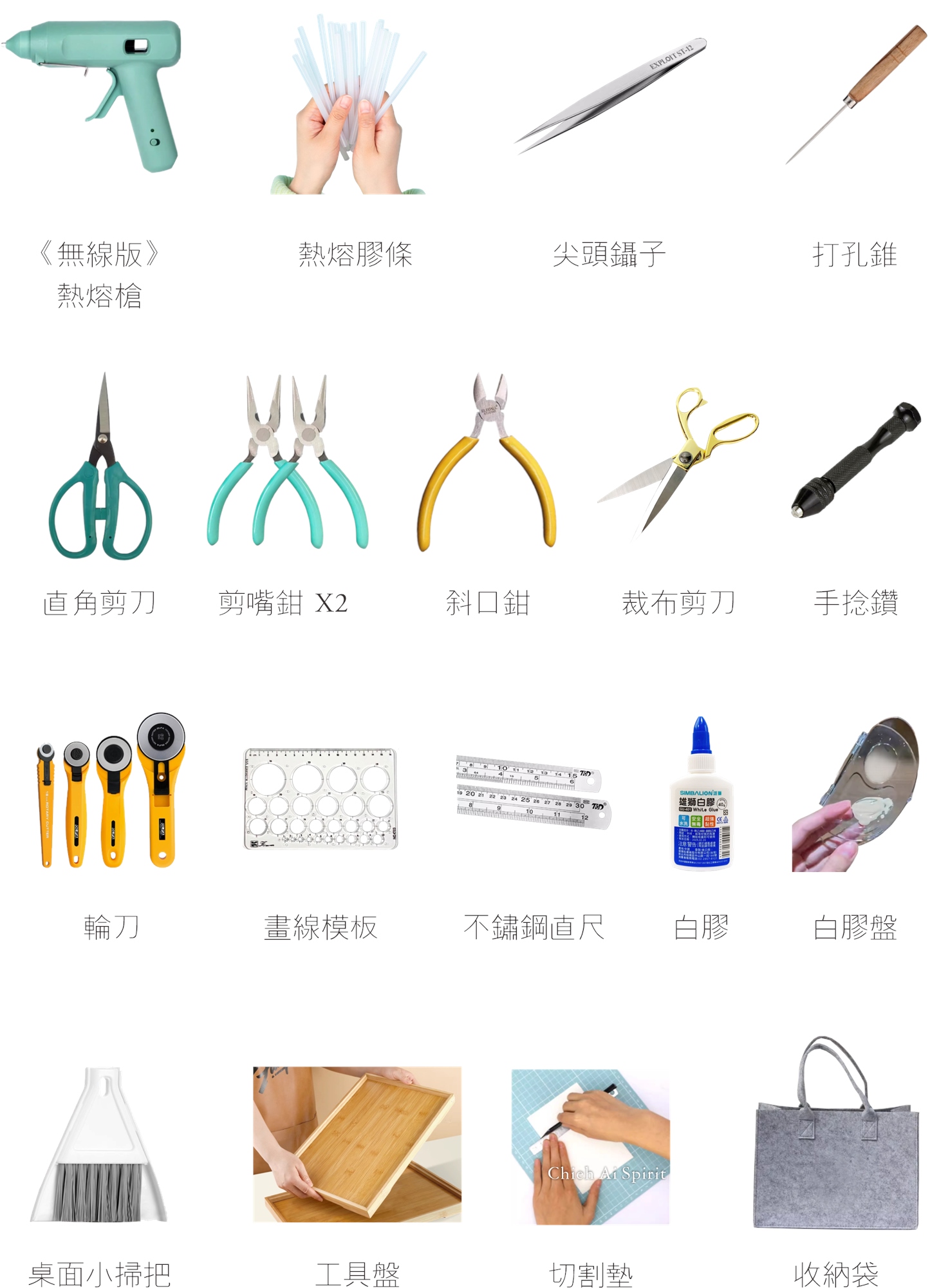 2. 工具包、材料包現場課程購買可當場折抵,若需使用《一日體驗班》折抵,需下次課程才能折抵使用。