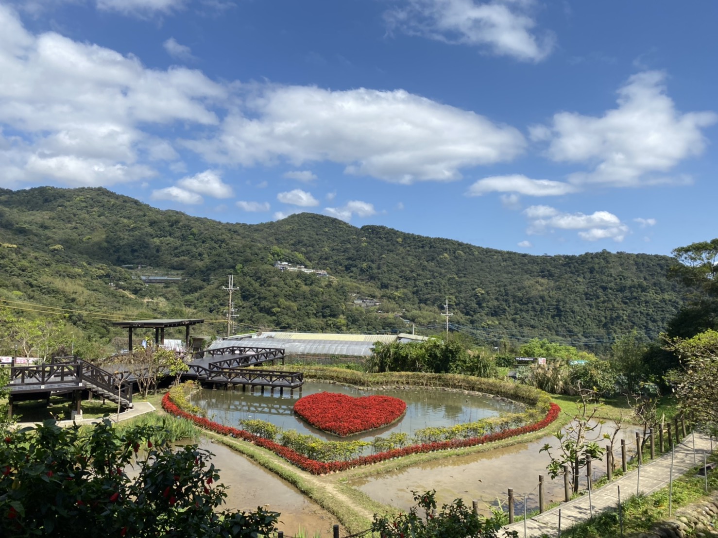 📢双心造型的「同心池」相當具有巧思,水土同心的設計,透過內圈的土域及外圈的水域來呈現,不僅象徵著情人永結同心,也強調水土保持的重要性。