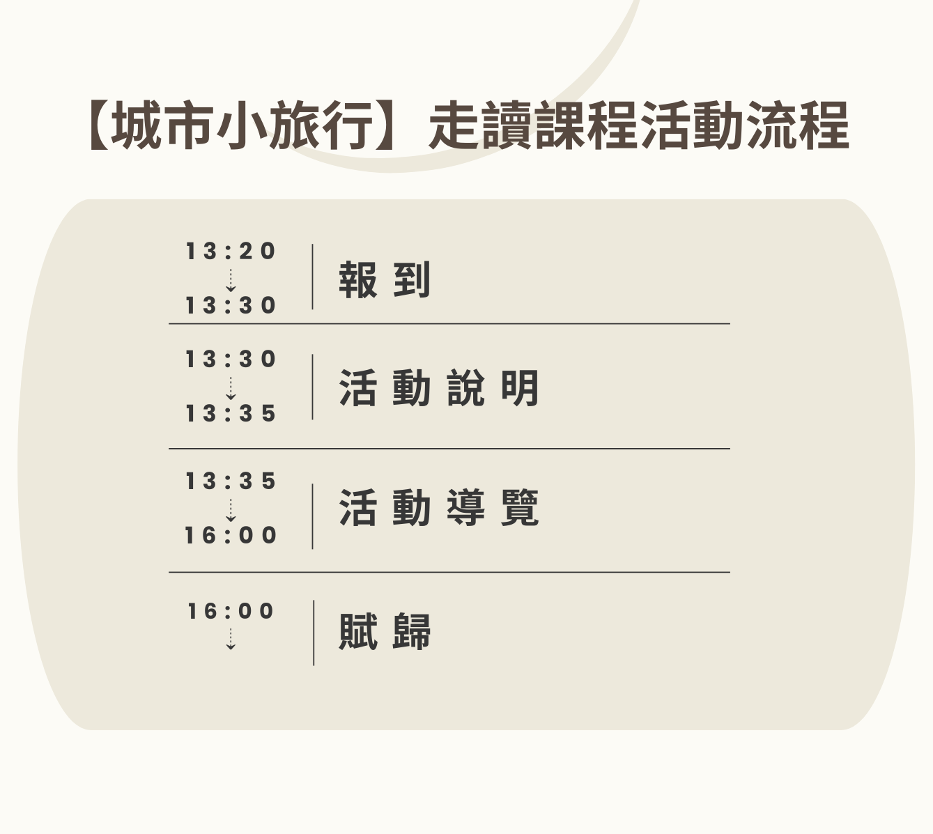 6、請於規定報到時間說明準時抵達,以免影響活動參與品質與自身權益。