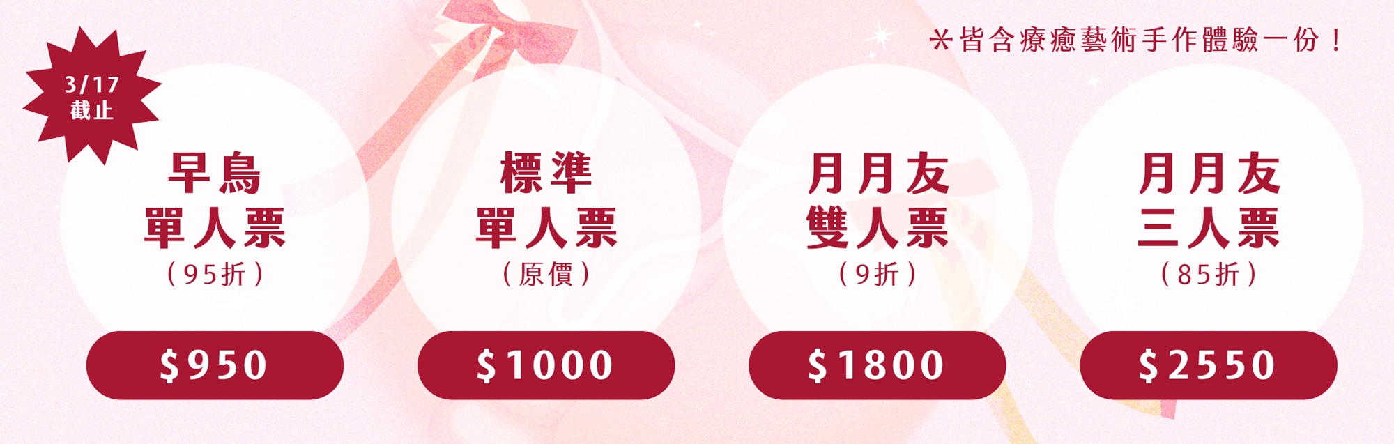 🌷早鳥單人票(95折):$950/人〖‼️ 3/17截止,購入請早 ‼️〗