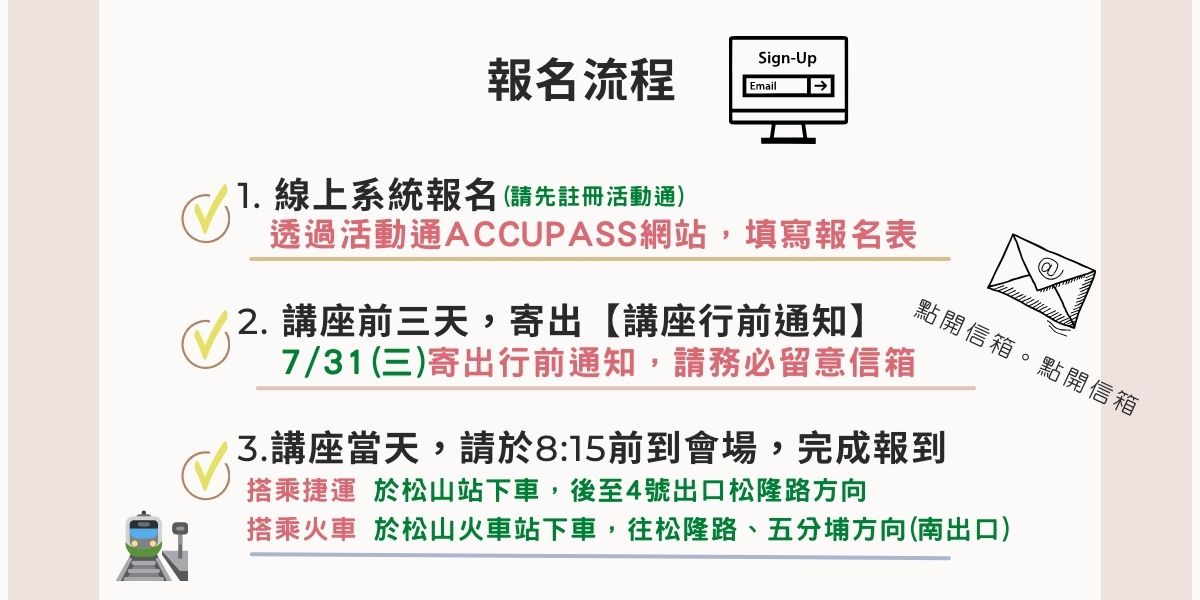 (三)活動將進行拍照,其影像供主辦單位日後教育推廣及成果紀錄使用,報名即同意授予肖像權。