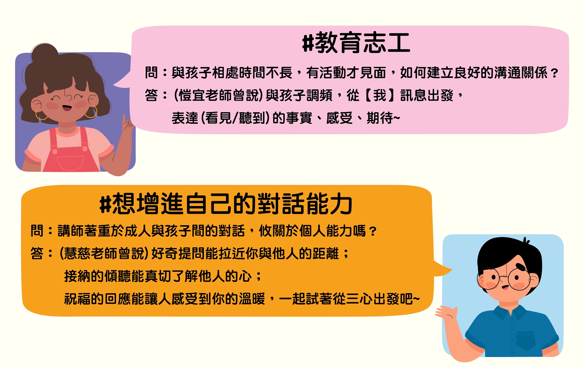 對話中加入三心---用好奇心提問、用接納心傾聽、用祝福心回應