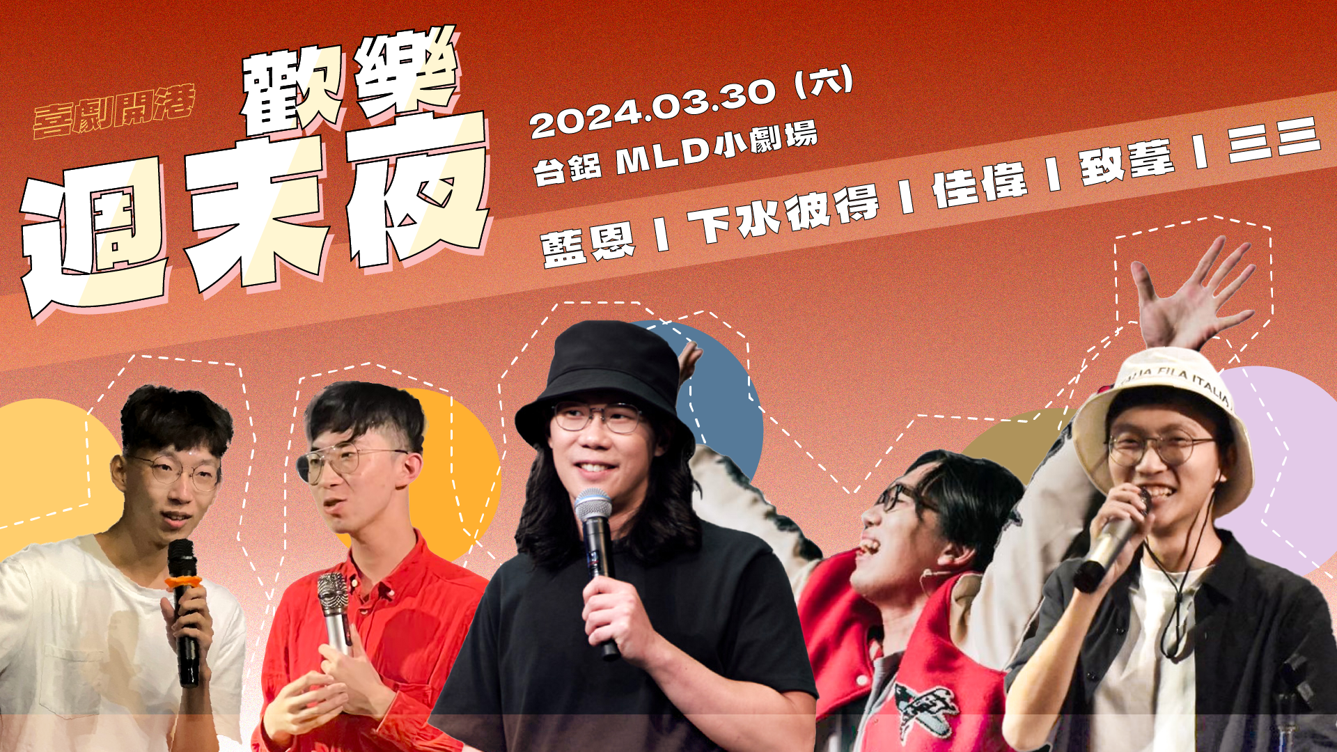 2024歡樂週末夜回來啦!今年的喜劇歡樂週末夜每次都將由至少一位特邀與一位老手帶上三名新秀的單口喜劇拼盤演出,不管是想要老手的全新段子還是想偶爾來發掘一下喜劇新秀的你都會有很不錯的體驗!