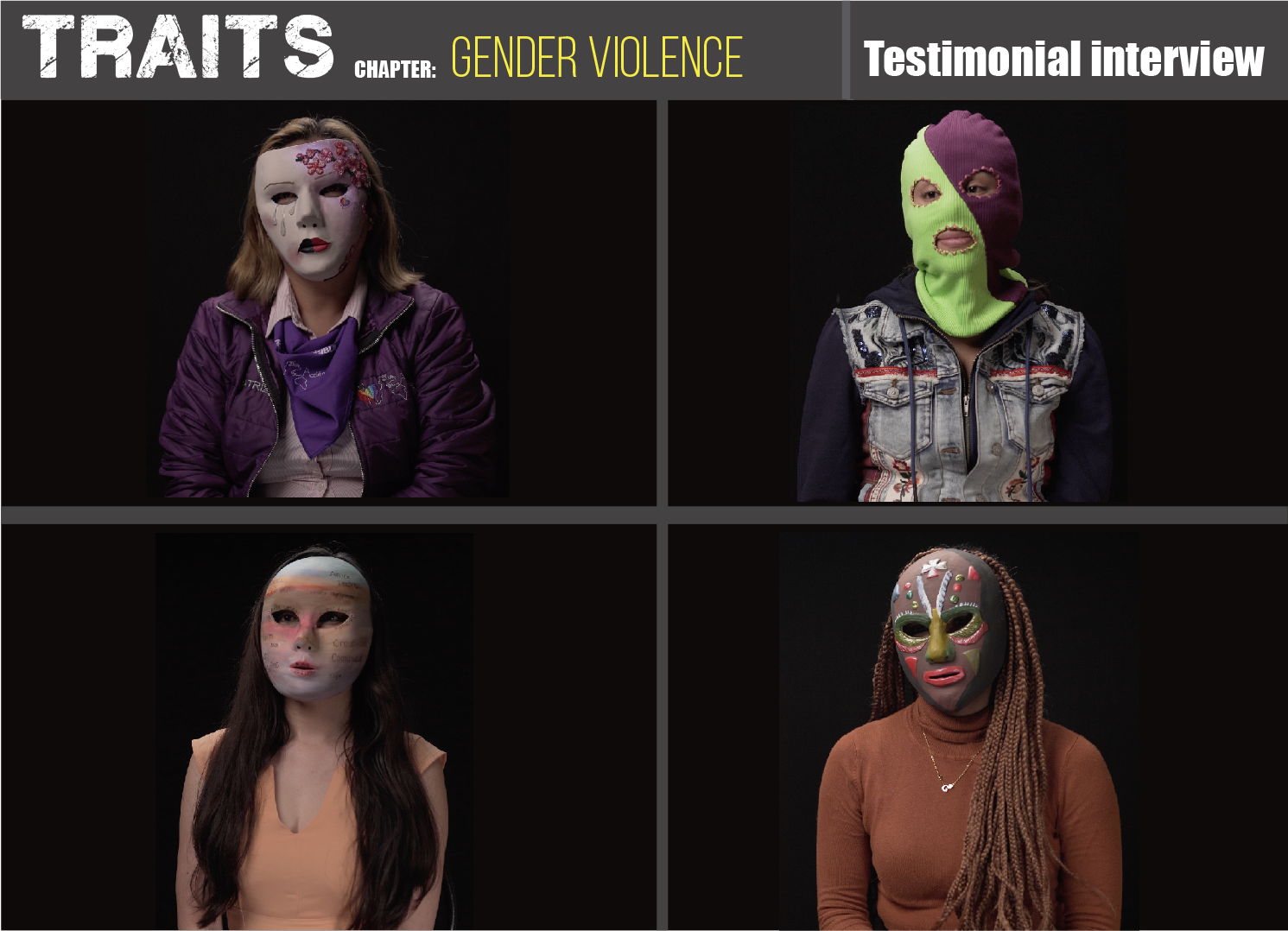 她是每個曾經因為性別,而遭受過歧視、家庭暴力,甚至家內性侵的倖存者。 厄瓜多公視邀請三位年齡不同的女性,戴著面具直視鏡頭,談論自己的受暴過往——暴力從什麼時候出現在生命當中? 她們如何離開來自親密關係的傷害?身為女性,她們怎麼理解自己的苦痛經歷? 「你能想像我戴著面具,但真實面貌也是面具嗎?」戴著的面具究竟是傷痛、是盼望、是突破?厄瓜多的三位女性帶著各自的故事,在鏡頭前呈現出女性面對創傷時不同的面貌。