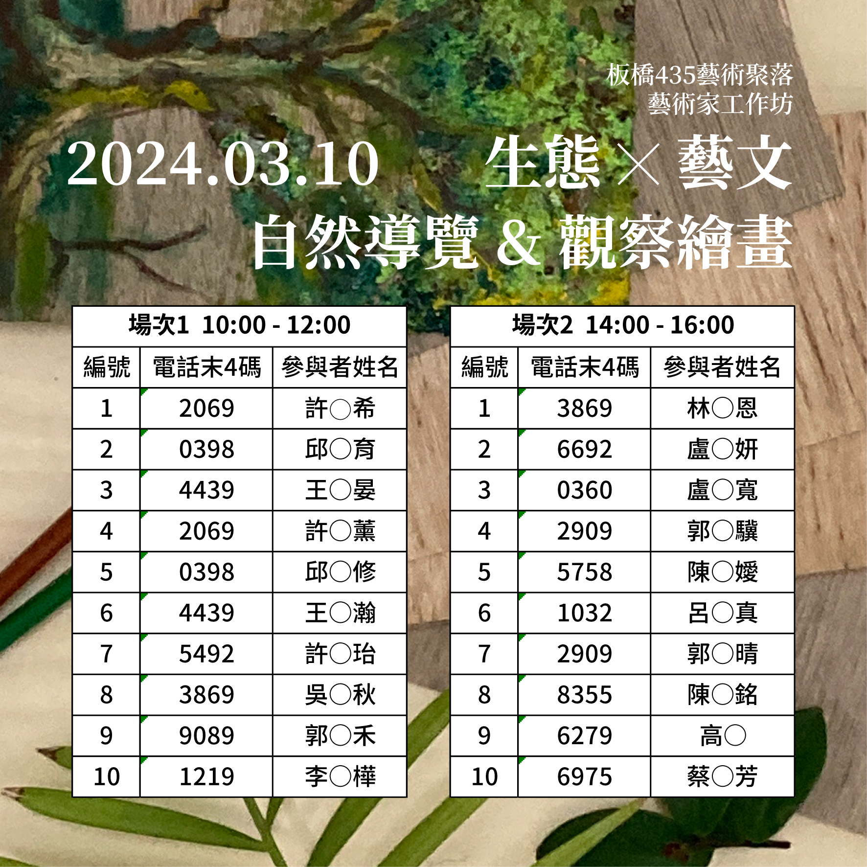- 繪畫工作坊參與人數:每梯次10人,共限量20人。