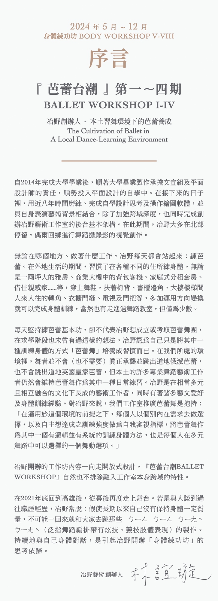 2024 身體練功坊 BODY WORKSHOP『 芭蕾台潮 Ballet Workshop 』入門芭蕾