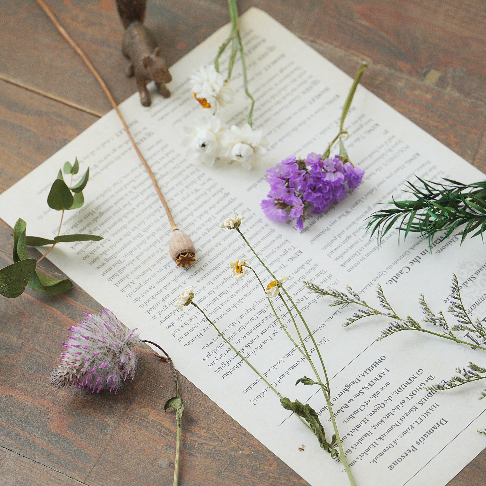 課堂上準備多種乾燥花材與葉材供學員自由挑選 (依現場準備為主)。