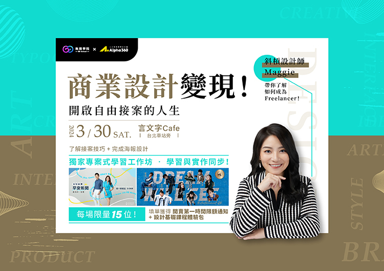主講人 Maggie 擁有豐富接案經驗,合作過眾多國際知名品牌,如迪士尼、捷安特、TABASCO、每朝健康、宜得利、美圖秀秀等等。她將分享設計學習歷程、大小設計專案、成功接案的技巧,透過課程的引導,帶著你完成具備變現能力的商業設計作品!
