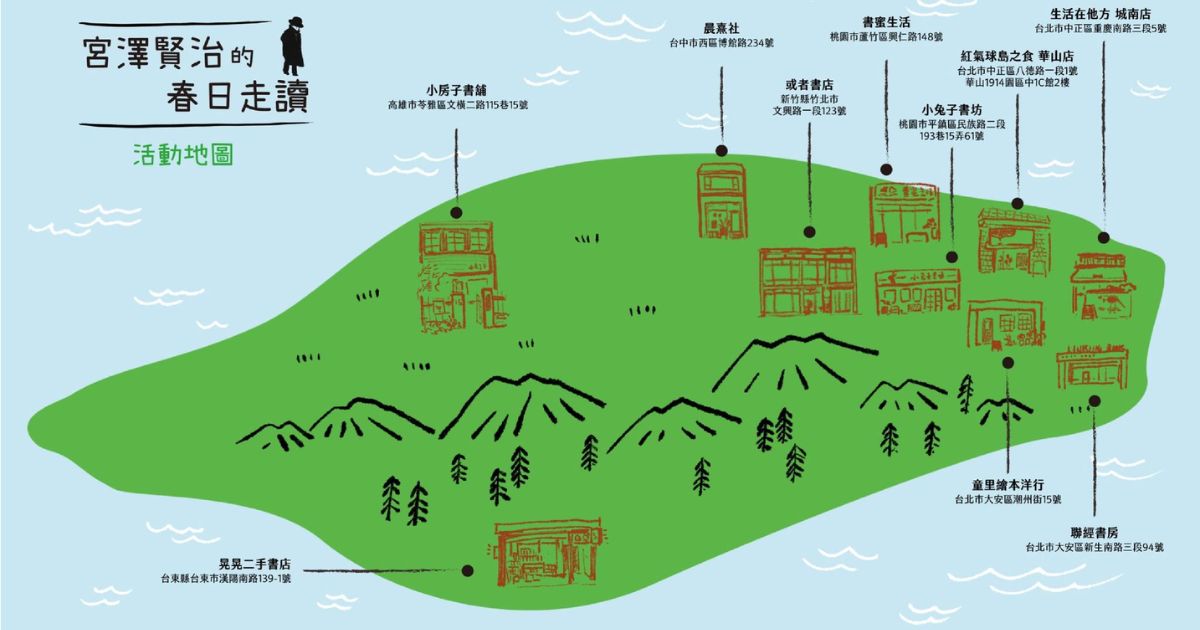 即日起至6/30,聯經與全台10家獨立書店合作,展開「宮澤賢治的春日走讀 集章活動」,10家書店分別有獨家印章可以蓋印蒐集,期待能和讀者在旅行的過程中,感受宮澤賢治童話的魅力~現在就收拾行囊,和我們相約在書店吧!