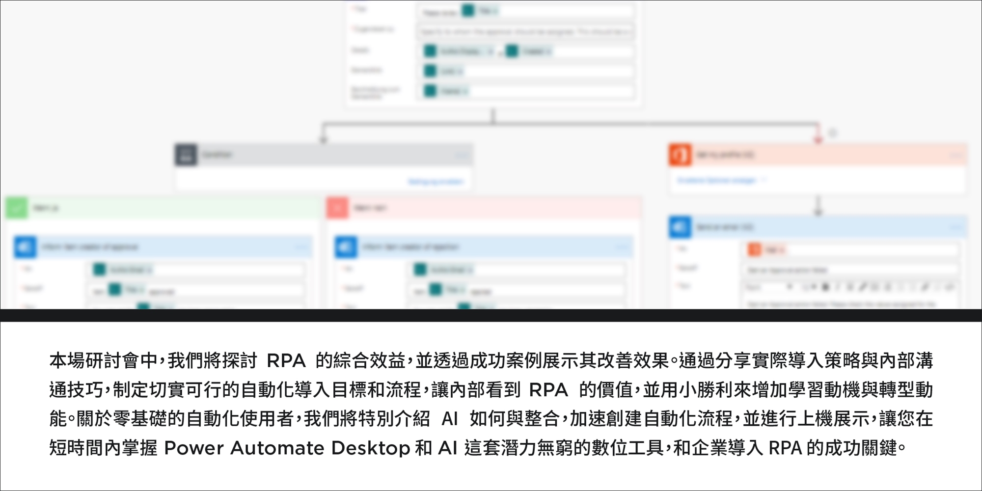 我們將在研討會分享過往的執行經驗,結合上機演示,讓大家了解如何用 RPA 工具 Power Automate Desktop 建立流程。