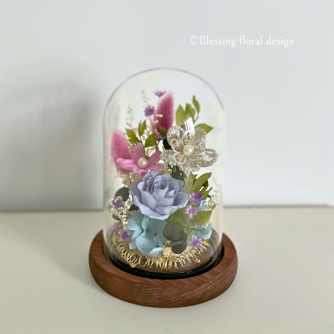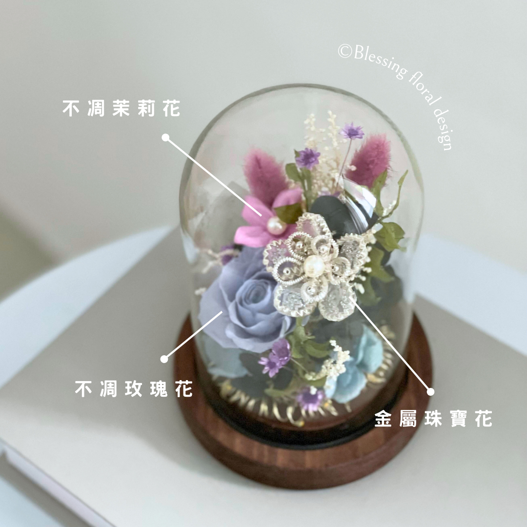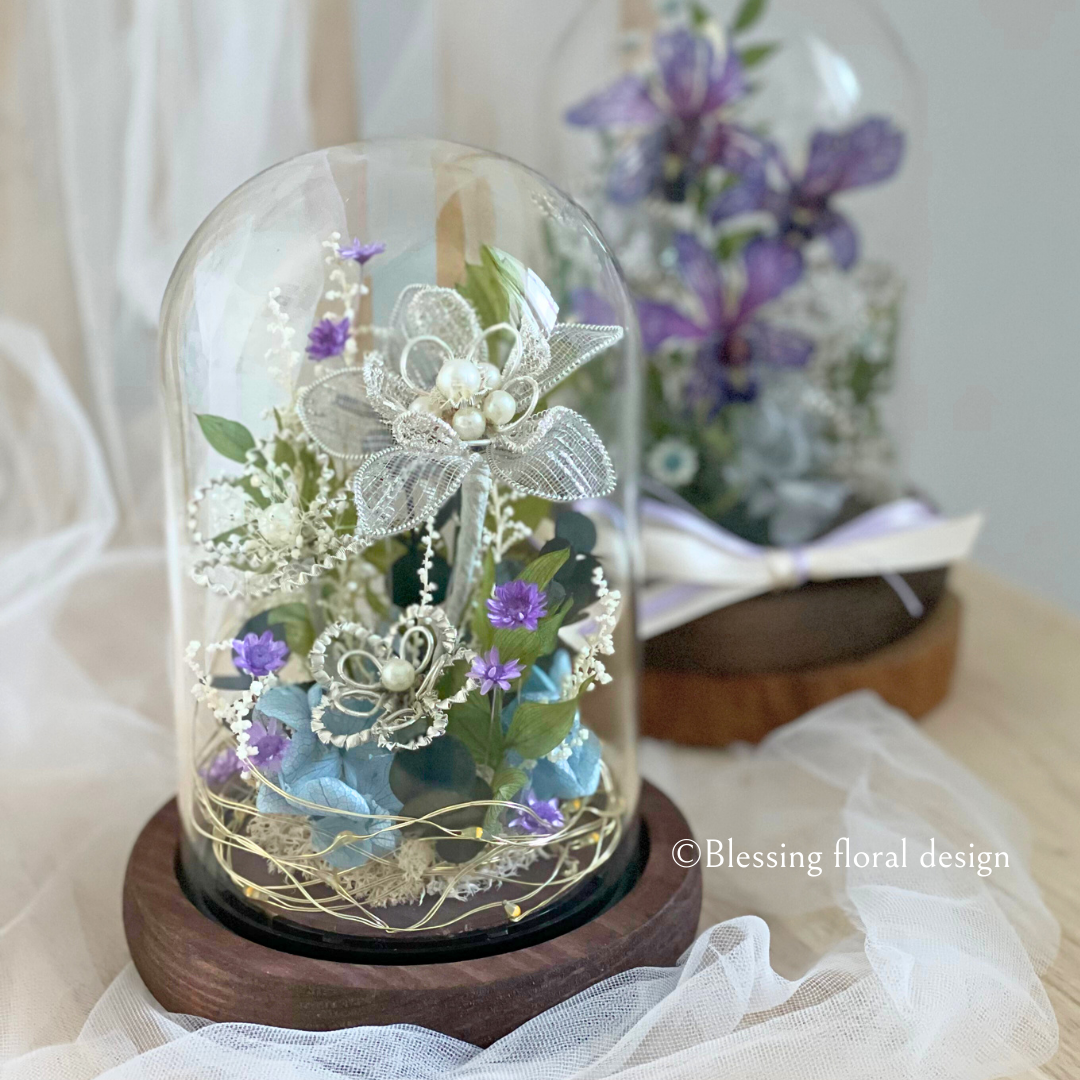 課程可選擇多款美麗的花形,將珠寶花與玻璃鐘罩結合,兼具美觀的同時還增加了作品的實用性!
