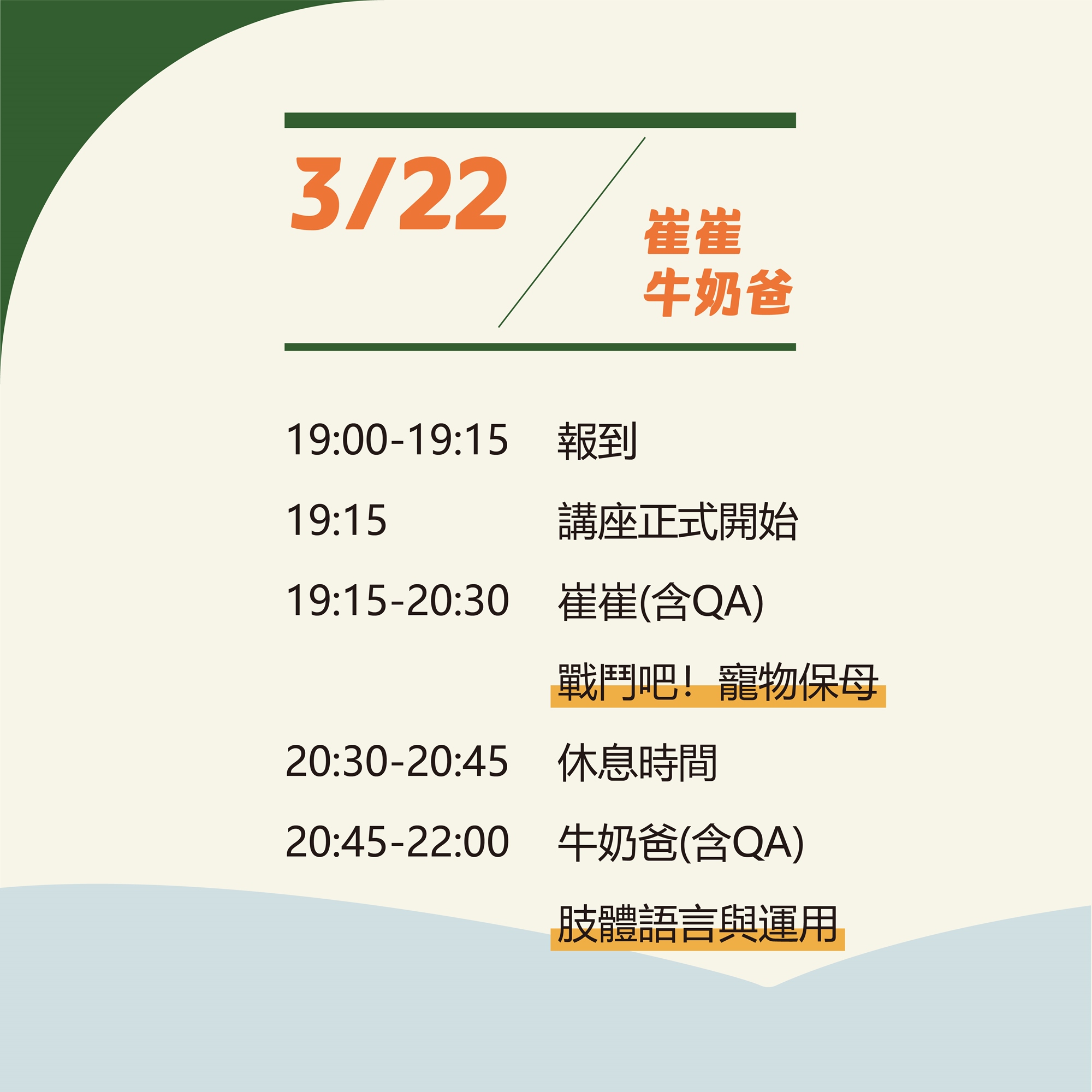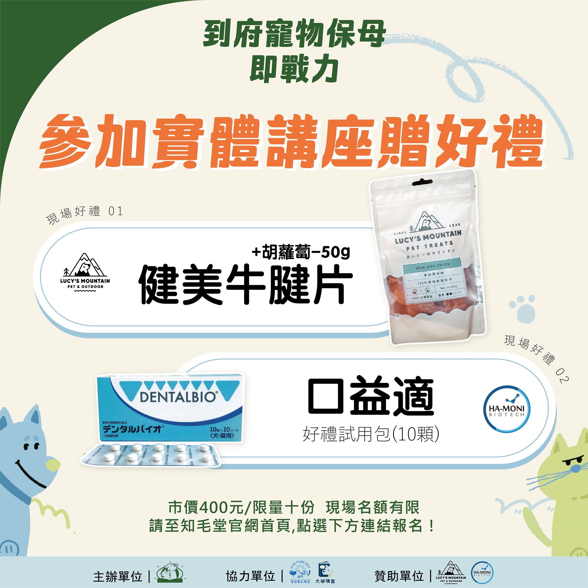 在這個講座上,你將有機會瞭解到全職到府寵物保姆的生活,並由三位訓練師分享基本的互動技巧到有趣的引導方法!趕快參加我們的「寵物保姆即戰力:必修講座」吧!