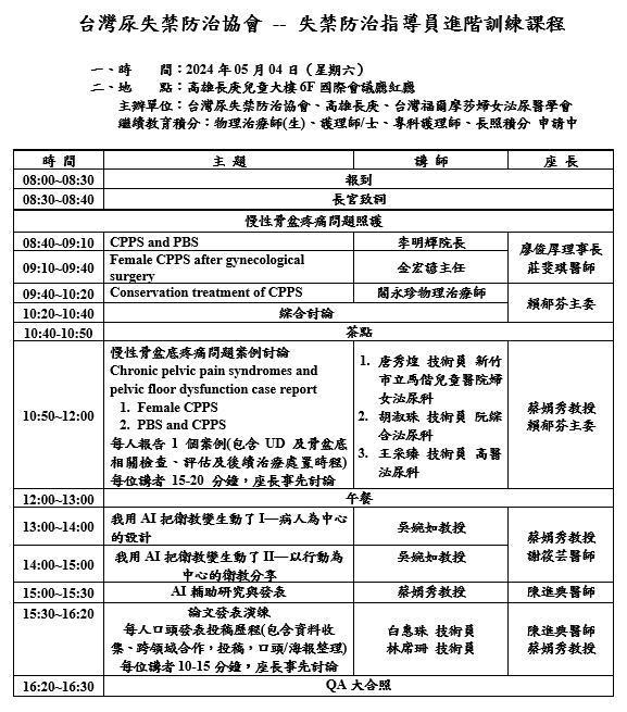 ‧ 紅廳~失禁防治指導員進階訓練課程 請點此