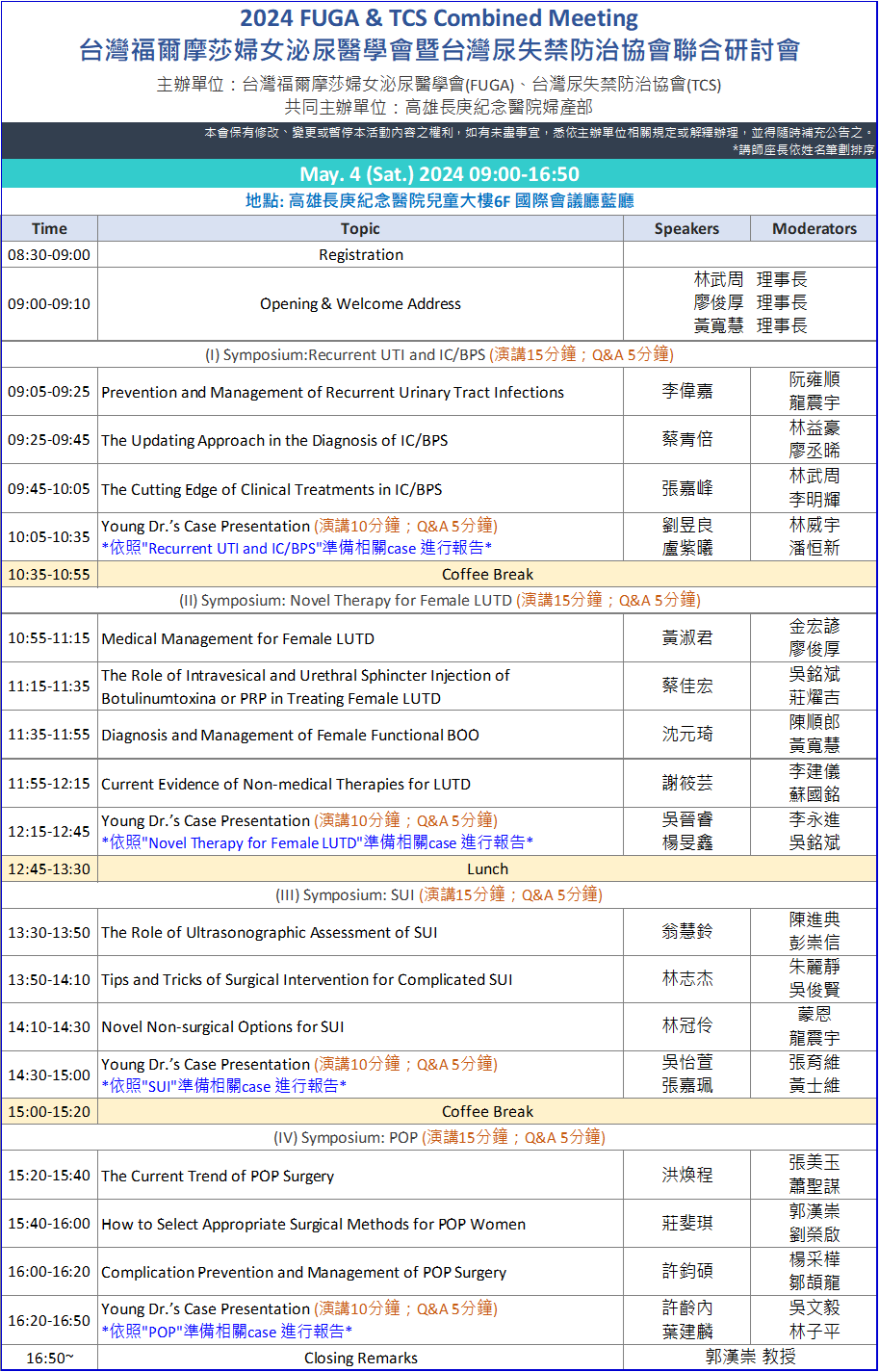 ·『台灣福爾摩莎婦女泌尿醫學會』會員免費,須繳清常年會費