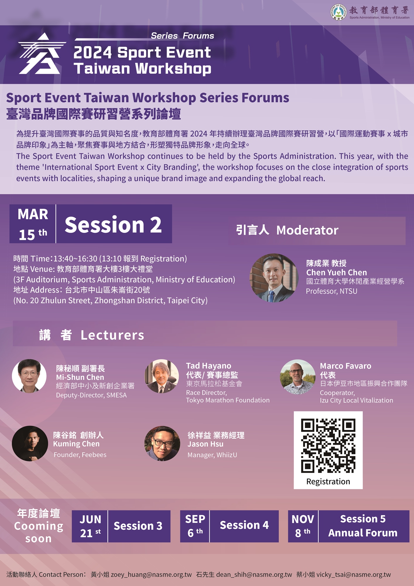 歡迎各位夯粉們,只要是對於運動賽事、運動科技、運動產業有興趣的話,歡迎參加2024臺灣品牌國際賽研習營系列論壇年度活動。