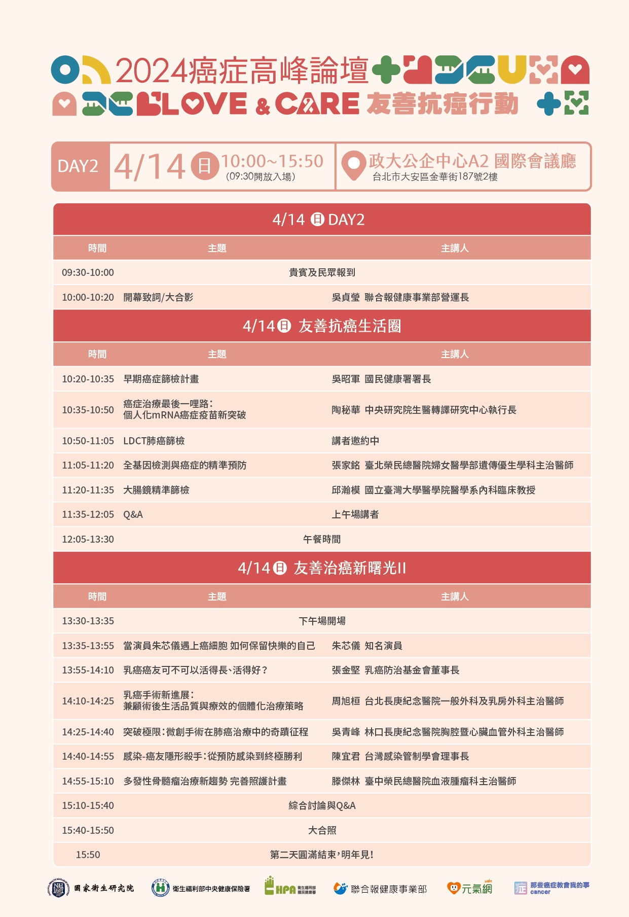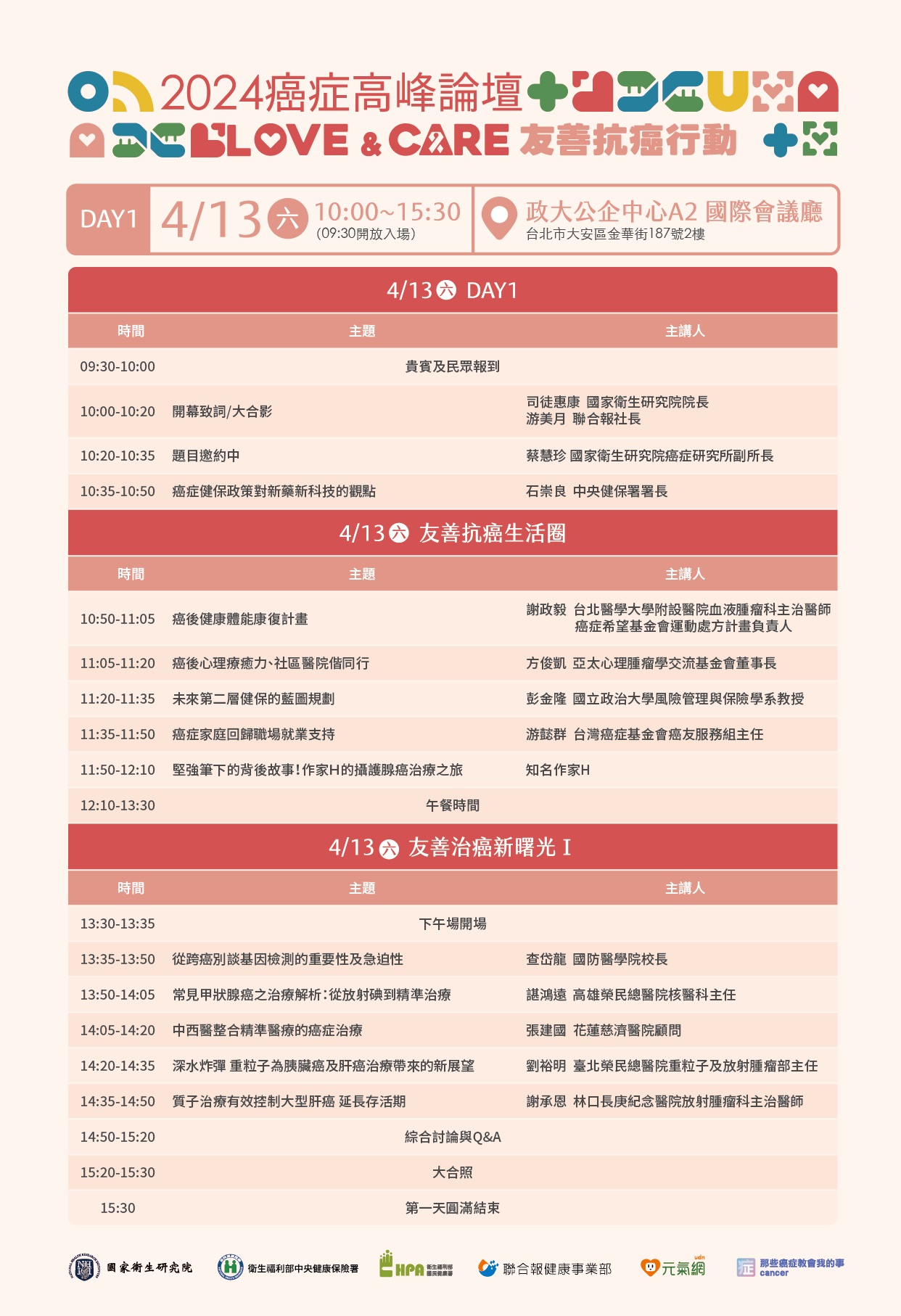 📍主辦單位:國家衛生研究院、中央健保署、國民健康署、聯合報健康事業部、元氣網、那些癌症教會我的事粉絲團