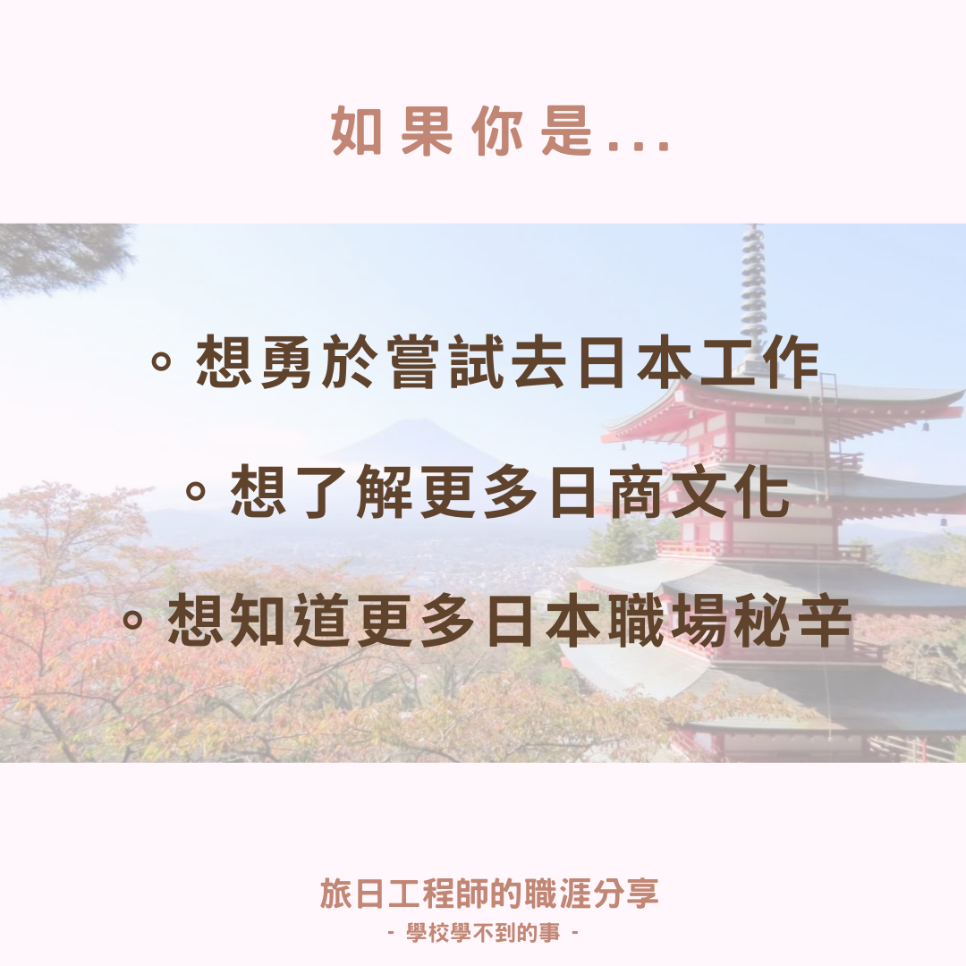 如果你想了解更多台日職場文化、想勇於嘗試去日本找工作、甚至想更多了解如何成為日本社畜!