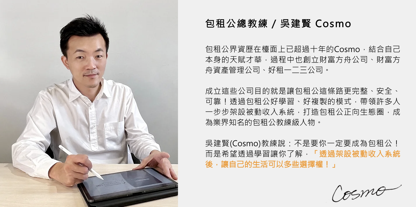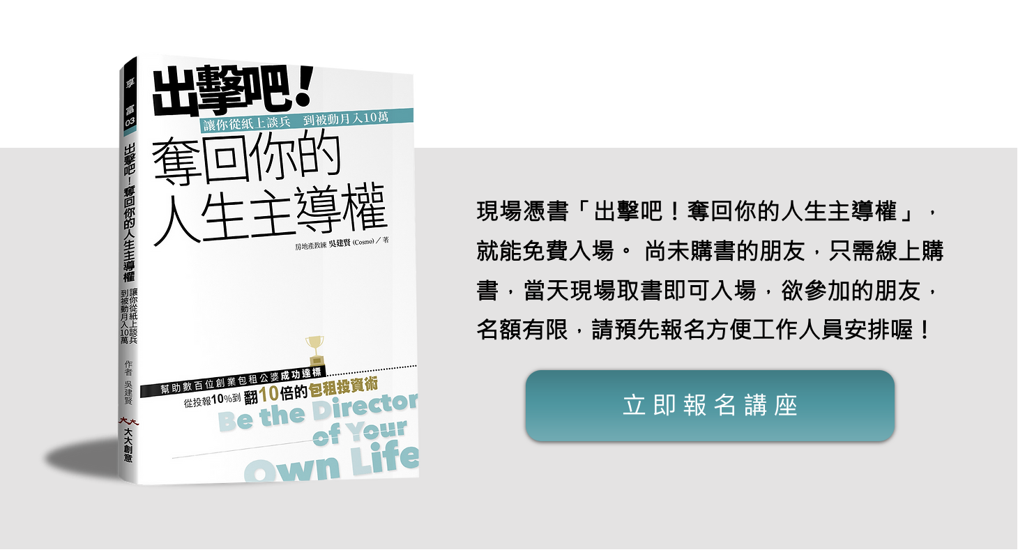 我們邀請你參與《買房收租案例分享會》由包租公總教練Cosmo親自分享他在2023年的真實案例探討。