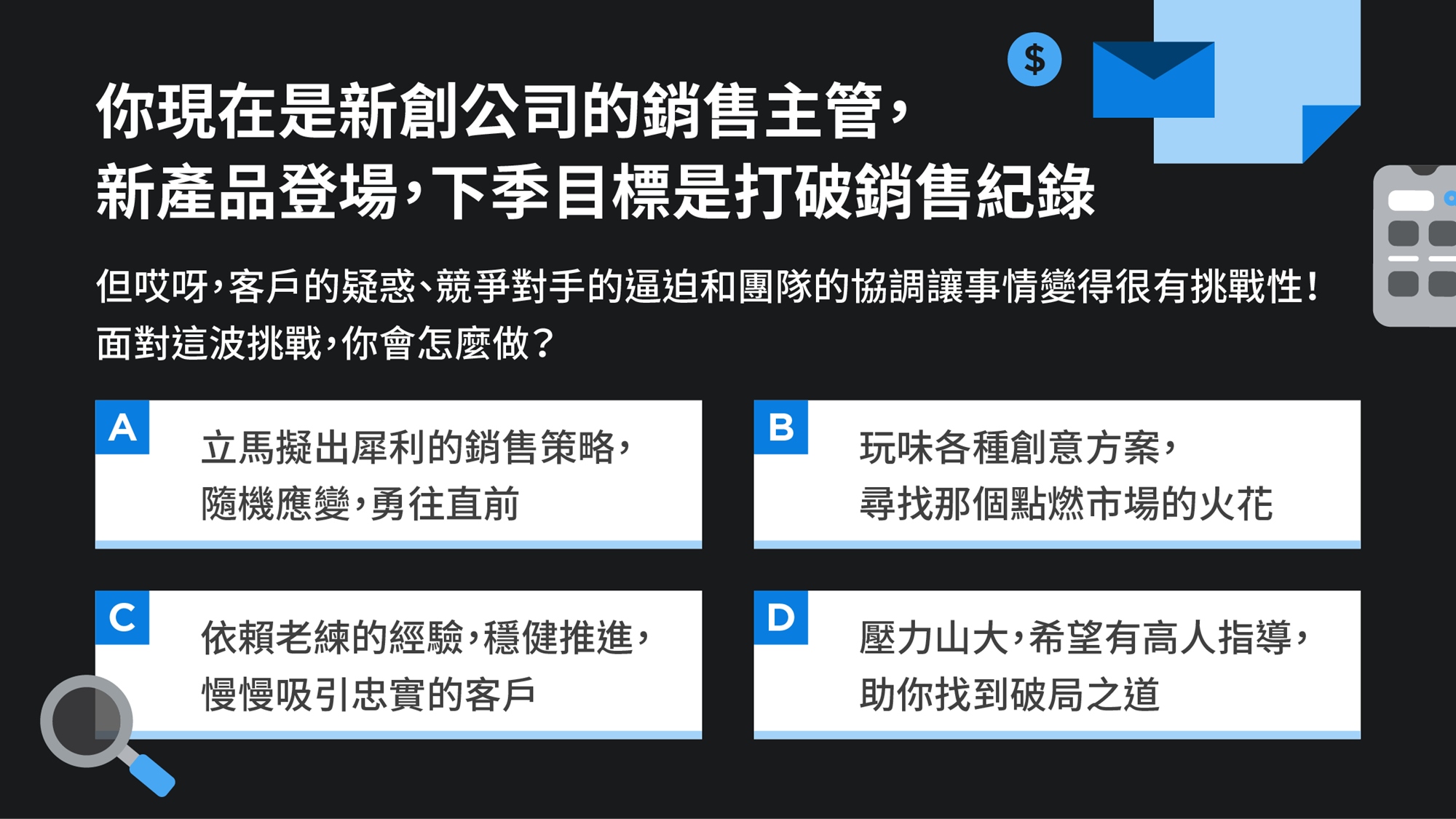 - 透過測驗掌握自身擔任業務的優勢,協助提供適合的功能