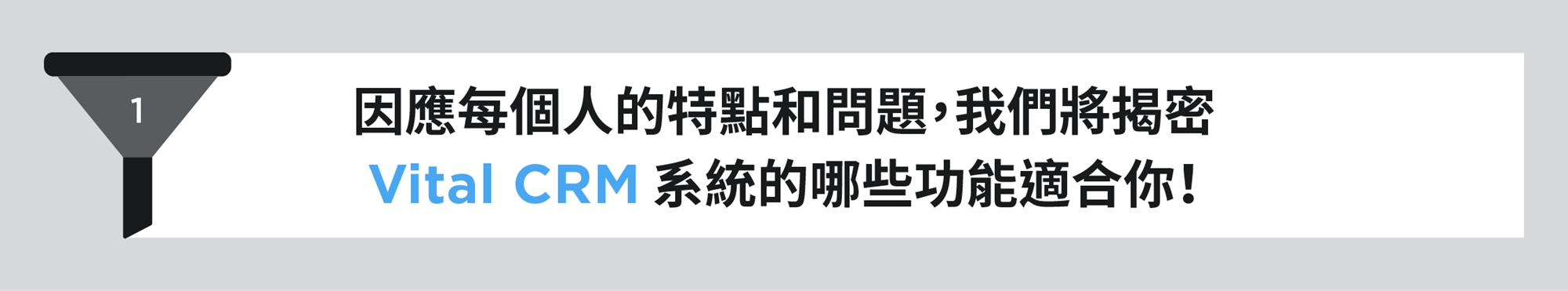 Vital CRM 客戶關係管理系統是企業永續經營的一大助力,彈性多元的客戶欄位設定、貼上標籤、快速找出目標客戶、不遺漏任何關於客戶的交代等功能,讓企業掌握客戶關係、創造長銷效益永續經營。