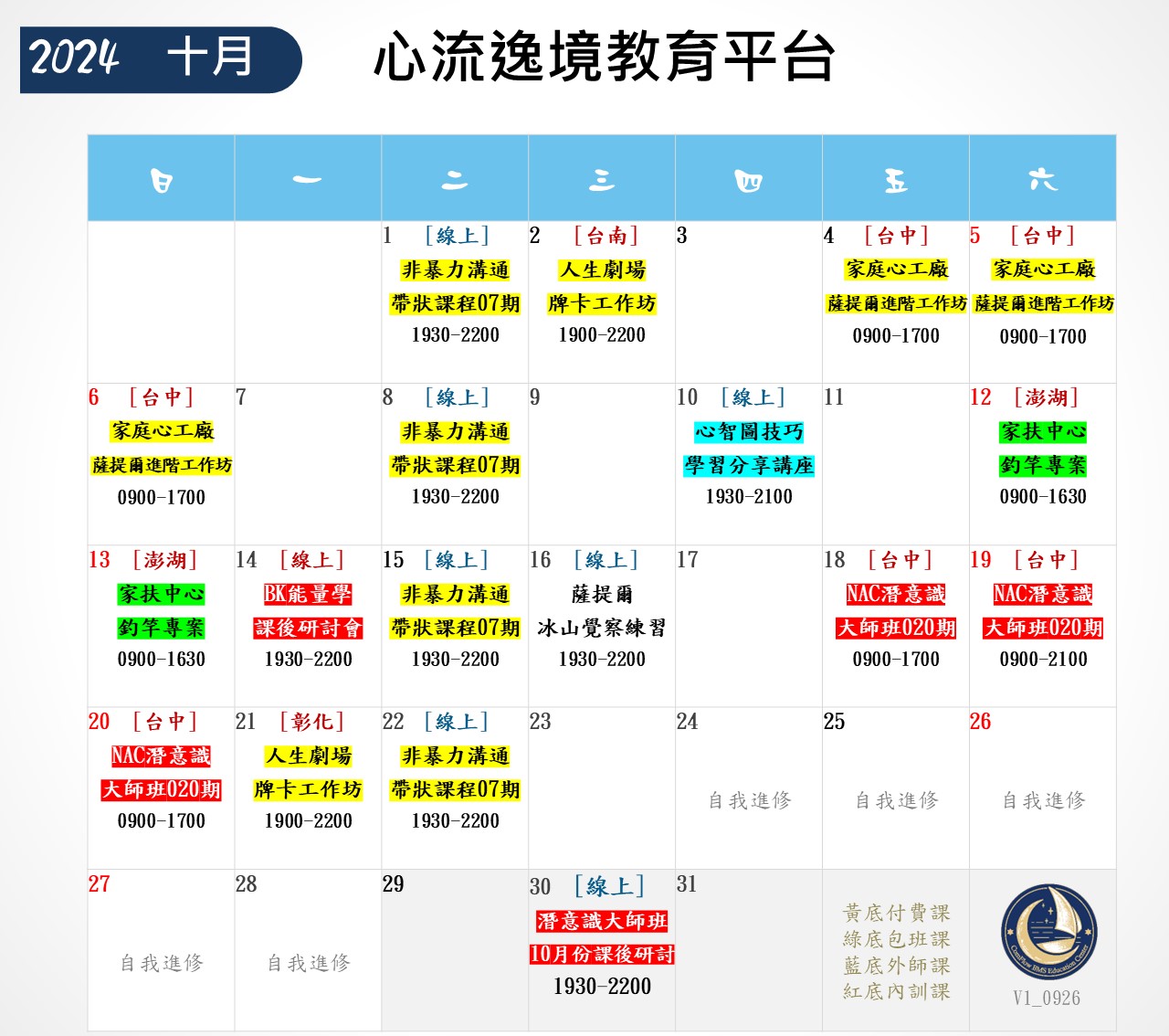 ❤心流逸境教育平台-十月份課程表❤