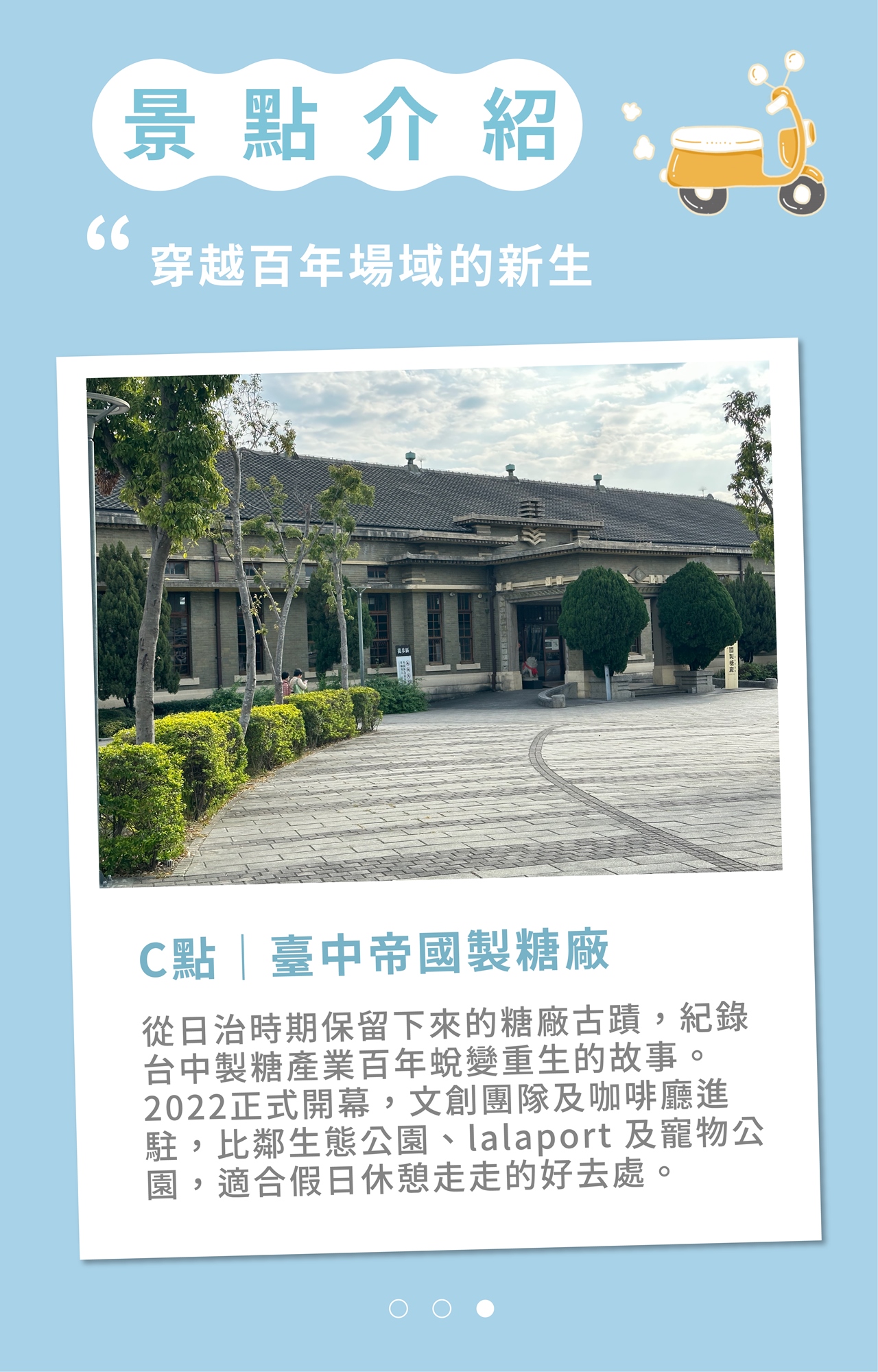 📍 活動路線:臺中市眷村文物館 - 大坑風景區 - 帝國製糖廠 - 臺中市眷村文物館