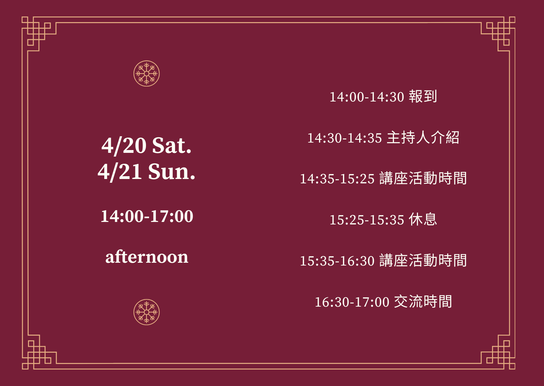 1、兩場內容相同,故可依個人時間安排選擇場次