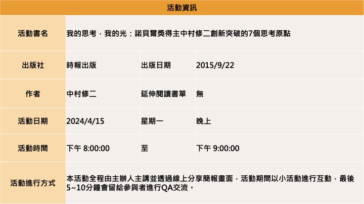 - 報名者完成報名後,將於活動日前一天email寄發提醒通知與Zoom連結,屆時直接點選[連結]登入。