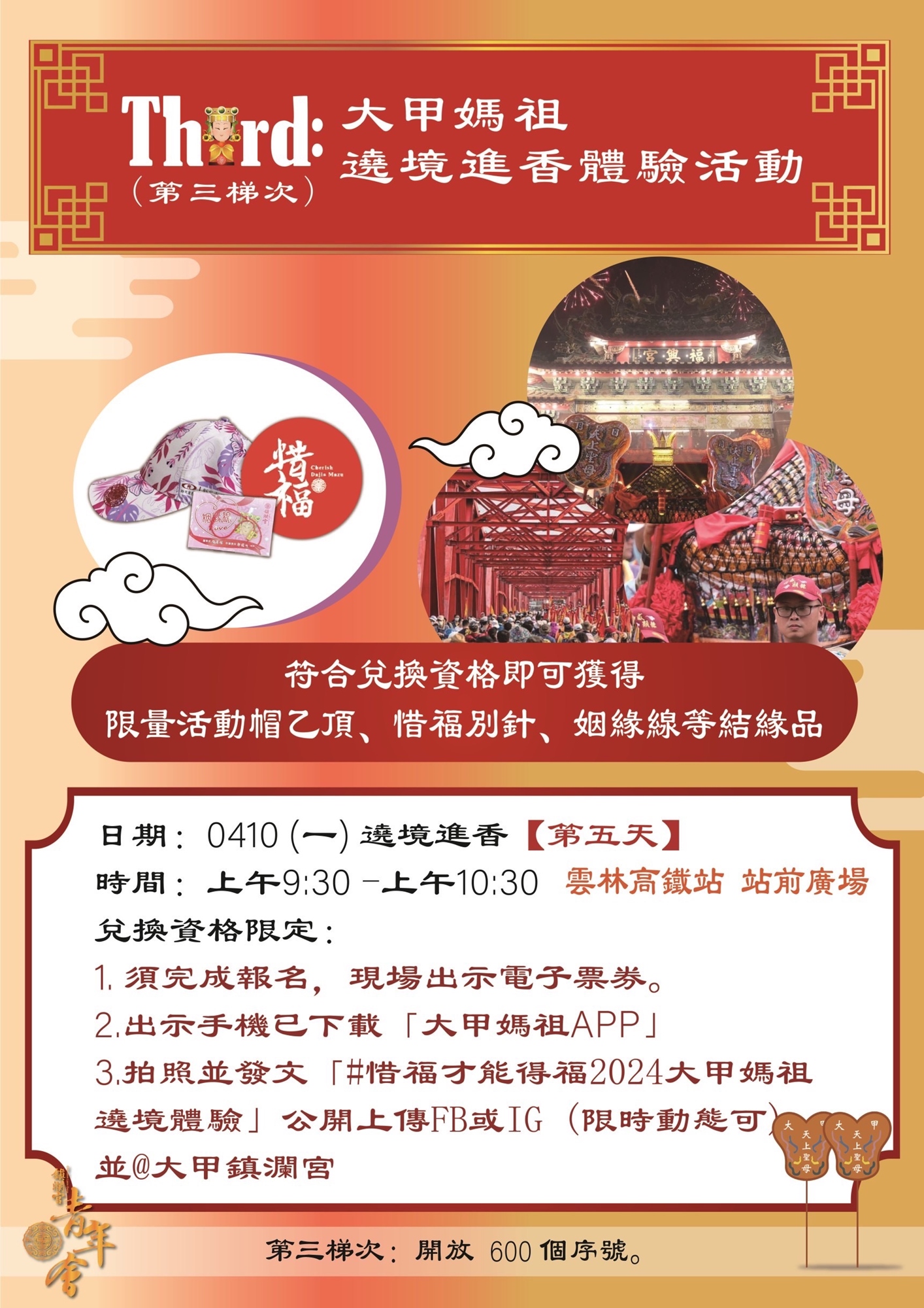 2.凡報名成功者,並完成每個場次限定的兌換資格,即贈送2024年遶境進香活動紀念帽(不挑款)。