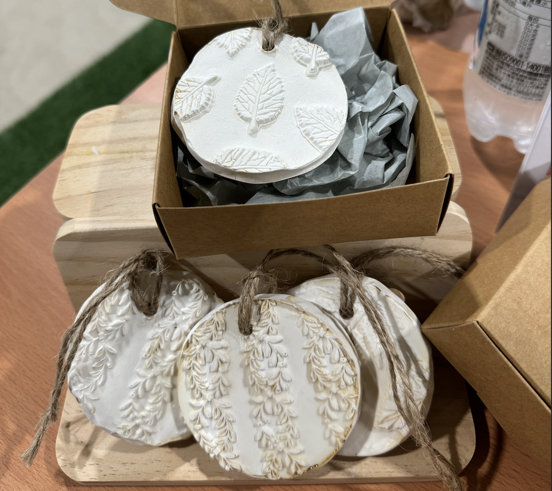 結合陶土,壓出喜歡的形狀與素材製作出的擴香石,滴上個人喜好精油,呈現獨一無二的擴香石作品。