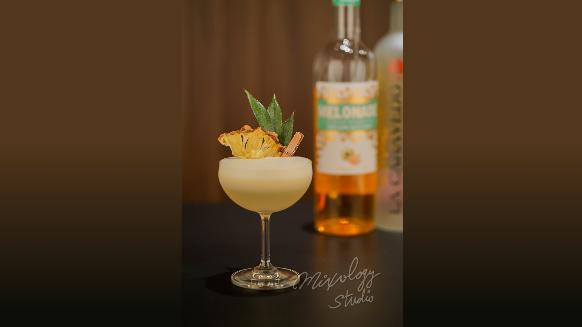 將基酒、果肉與秘製酸甜汁一起放入調理機攪勻
