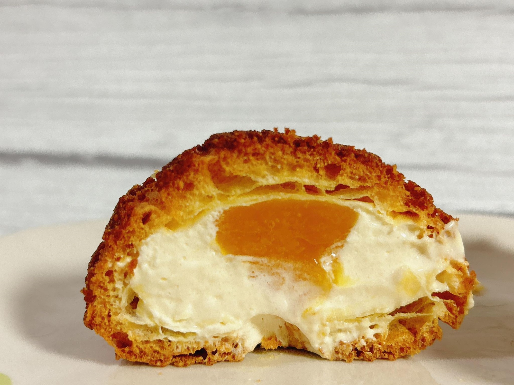 酥脆的外殼搭配芒果卡士達及芒果丁,一口咬下都是滿滿的幸福感。