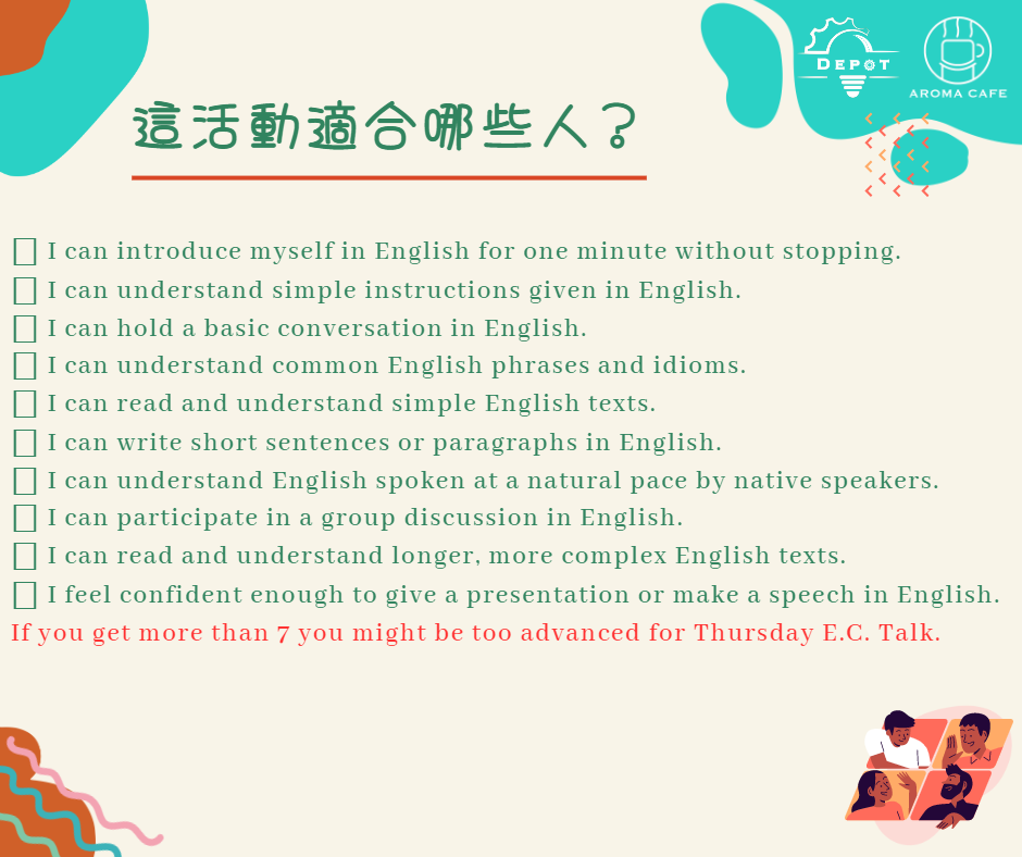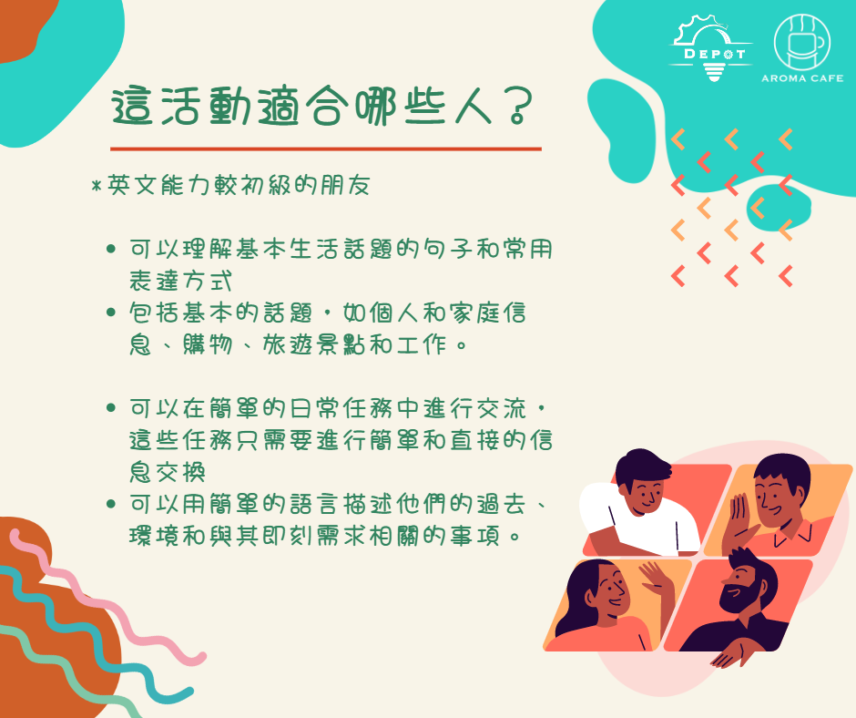是一個專為英文程度初級的朋友們設置的沉浸式英文對話活動