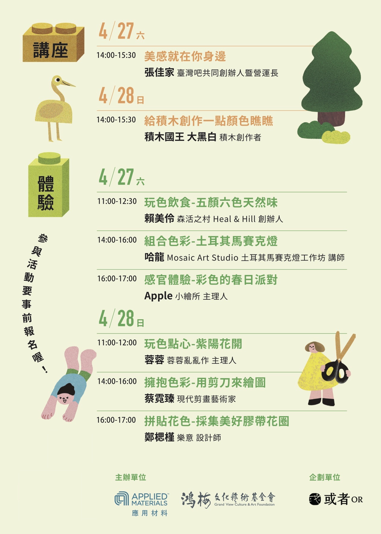 * 講座和體驗都要事前報名喔!如活動名額已滿,歡迎登記候補(選擇候補票券)。