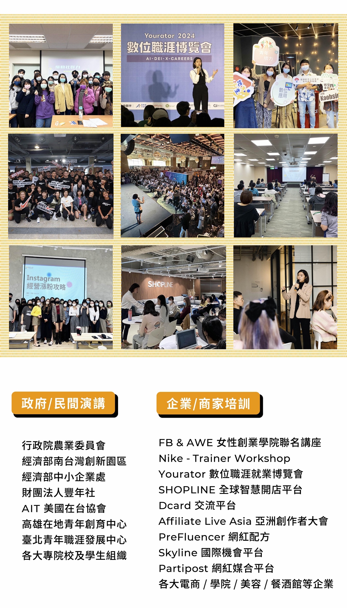 Zoe 過去擁有近七年社群行銷工作經驗 & 經營自媒體三年,至今依然帶領團隊耕耘, Instagram 擁有 8 萬名追蹤者及維持高互動度,這場講座將會揭秘 2024 年最新的應對政策,如何在圖文與 Reels 創作之間達到最佳平衡,突破流量!