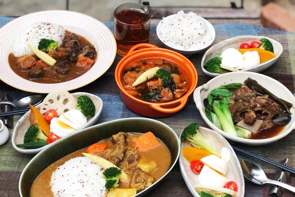品嘗完雅婷老師的拿手菜,接著試試咖哩牛。起源於印度的咖哩,是由薑黃、芫荽、丁香等多種香料食材混合而成,在亞洲料理界可說是無人不知無人不曉,傳至各國又入境隨俗演變成不同風格,例如:泰國綠咖哩、瑪莎曼咖哩;馬來西亞會加點椰漿和椰絲;日本則是辣度降低、帶有甜味,值得一提的是,咖哩也算常備菜系列的一員,煮好冷凍起來,要吃的時候再解凍加熱,搭配麵包、飯、麵,又是快速輕鬆的一餐。