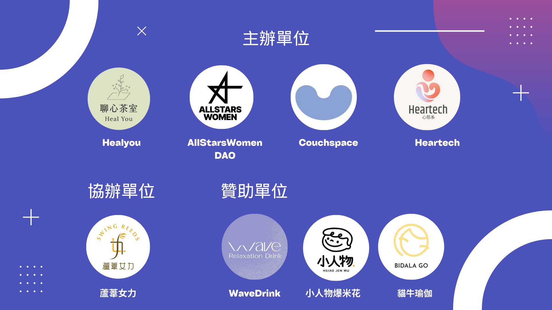 心。科技療癒節 由AllStarsWomen DAO、Healyou、Couchspace 和 Heartech 共同主辦,是一場融合創新科技與心靈療癒的獨特體驗,旨在激勵、支持和凝聚女性。